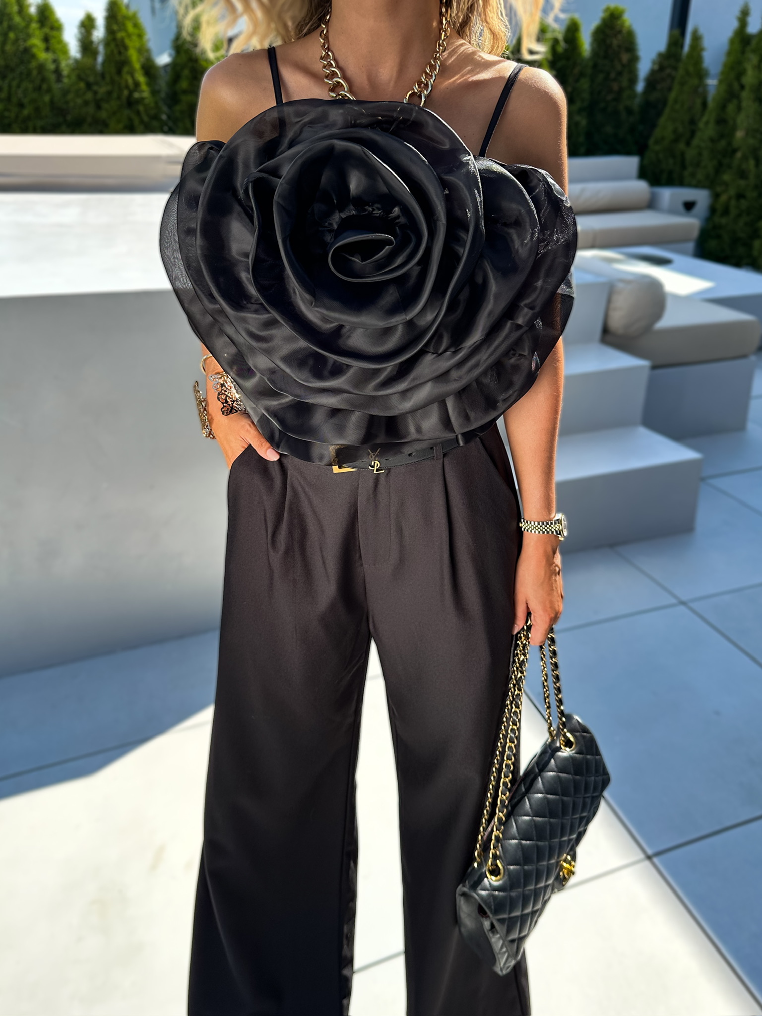 Černý kalhotový kostýmek s topem JORIK Velikost: M/L