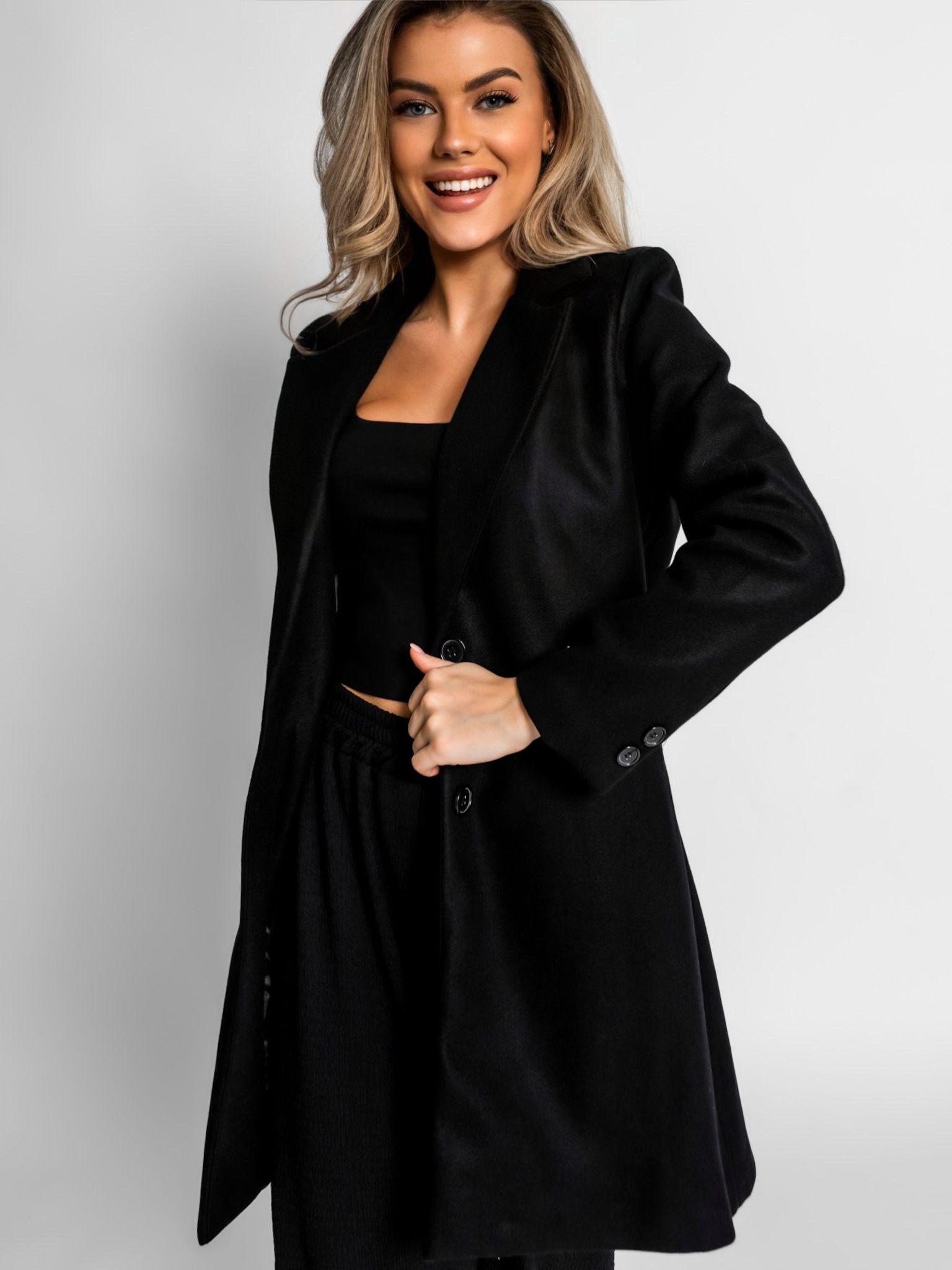 Černý krátký basic flaušový kabát NOAM Velikost: ONESIZE