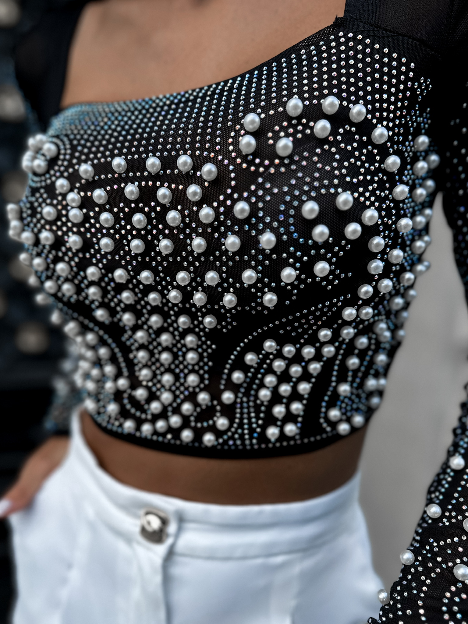 Černý krátký top KOLGO se zdobením Velikost: M/L