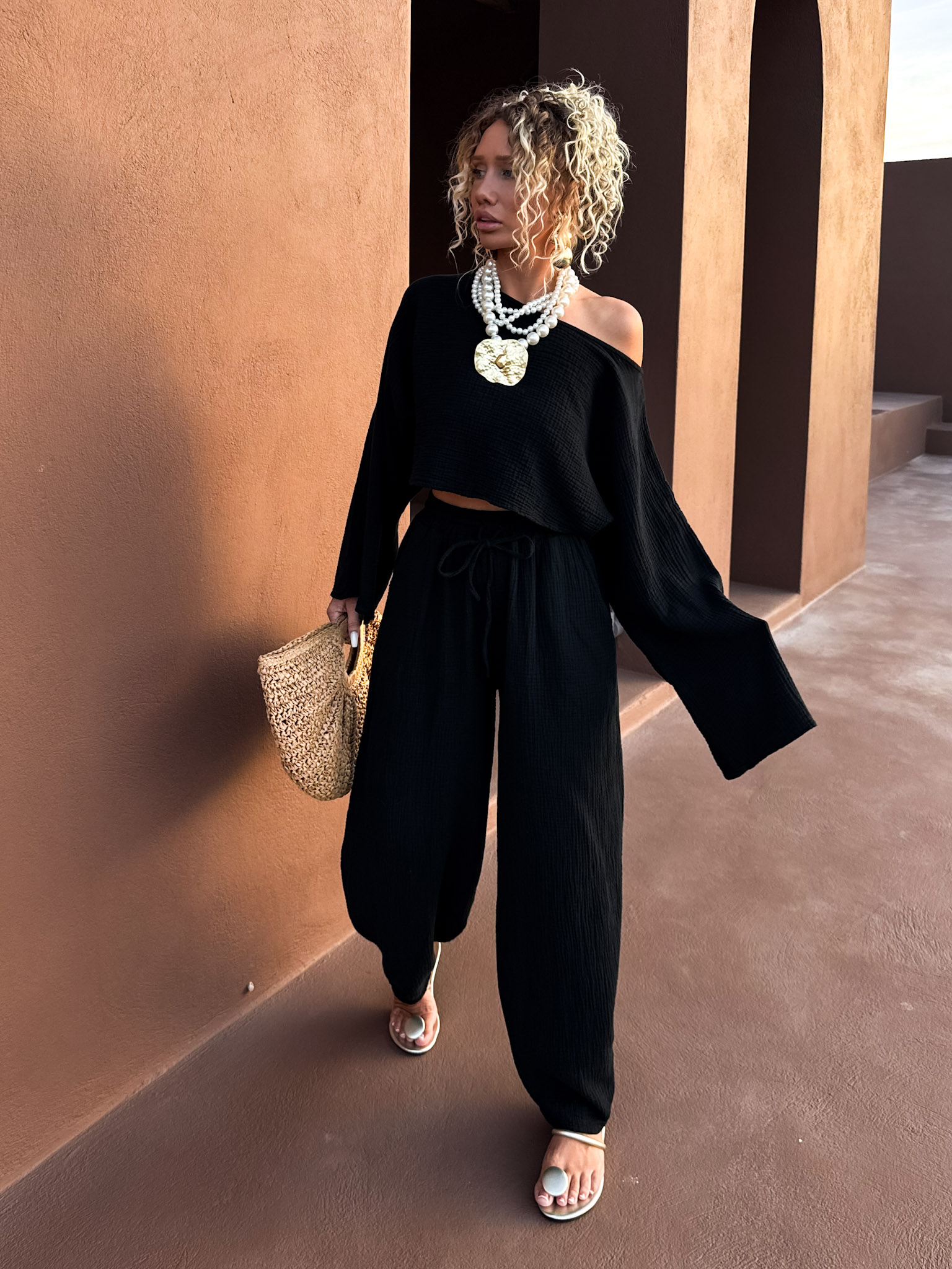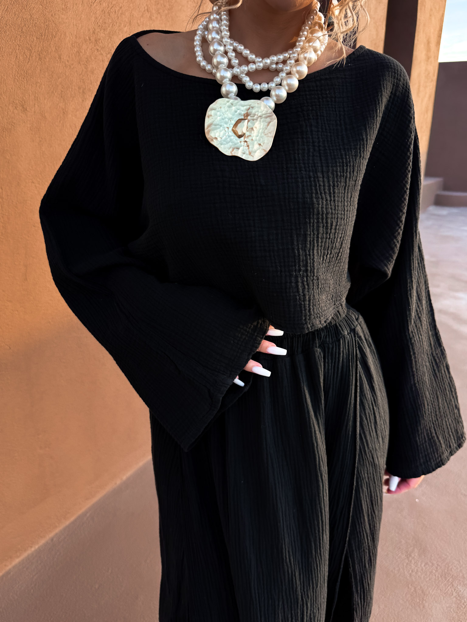 Černý mušelínový letní top VHAGAR s dlouhým rukávem Velikost: ONESIZE