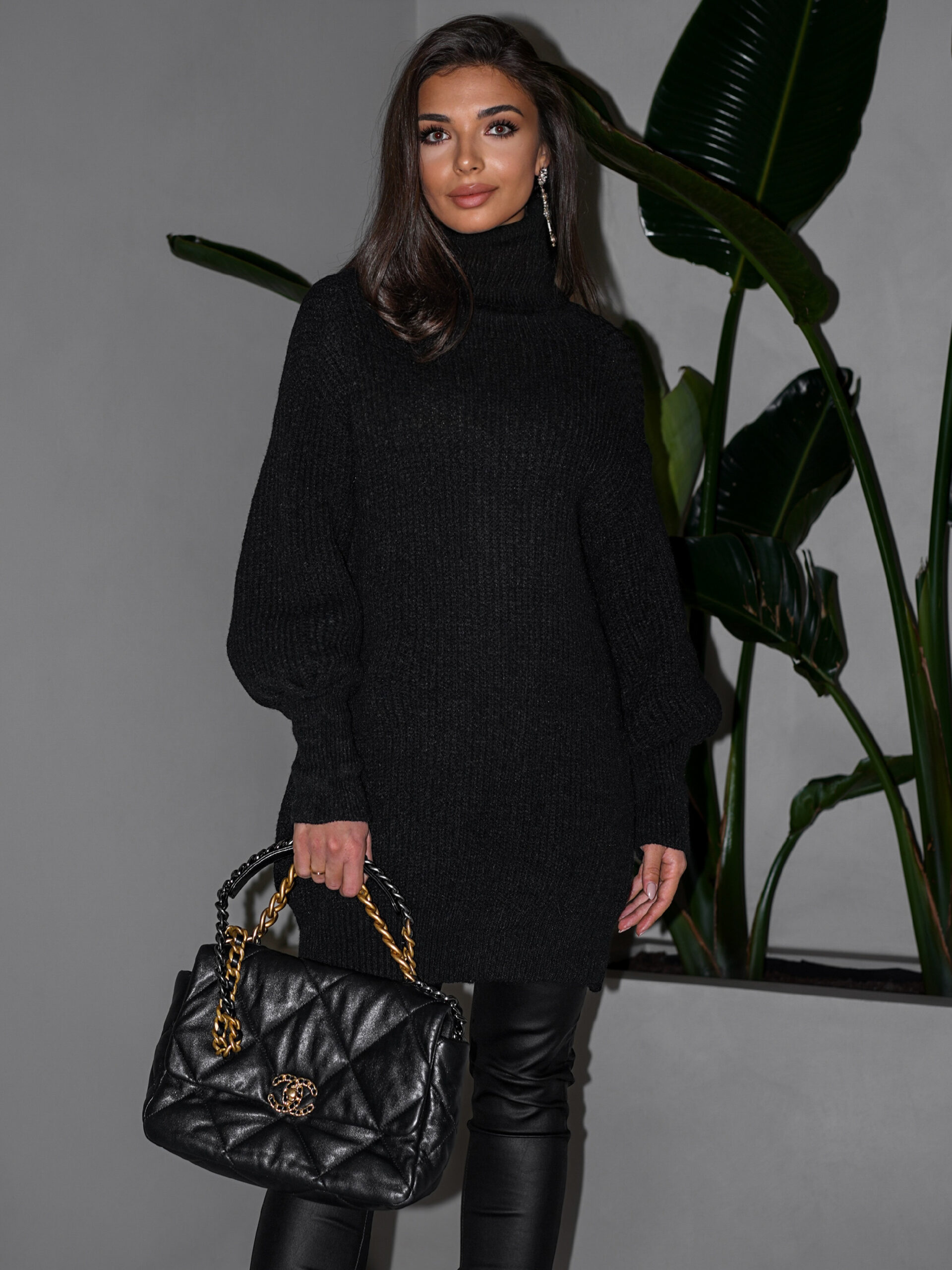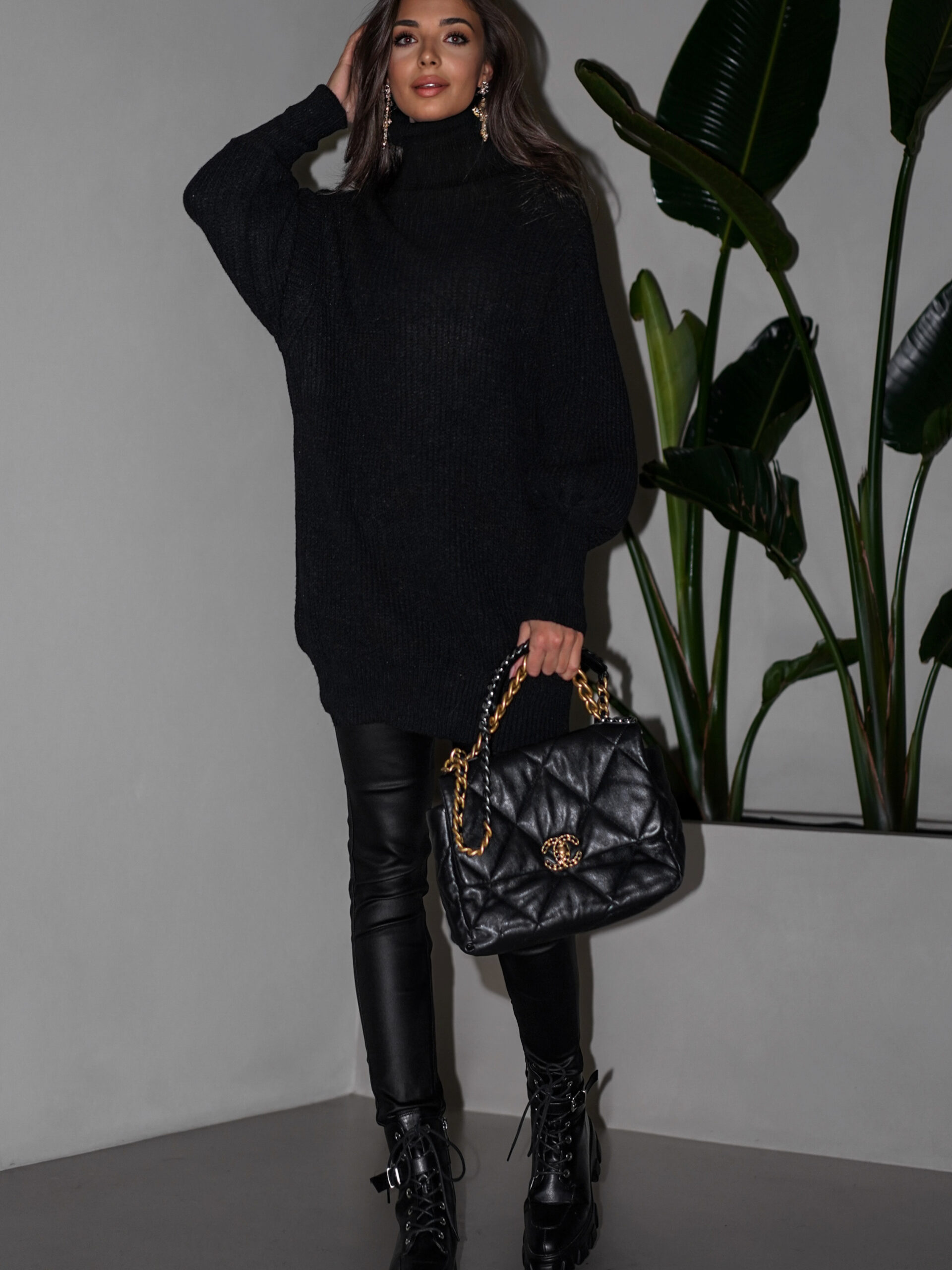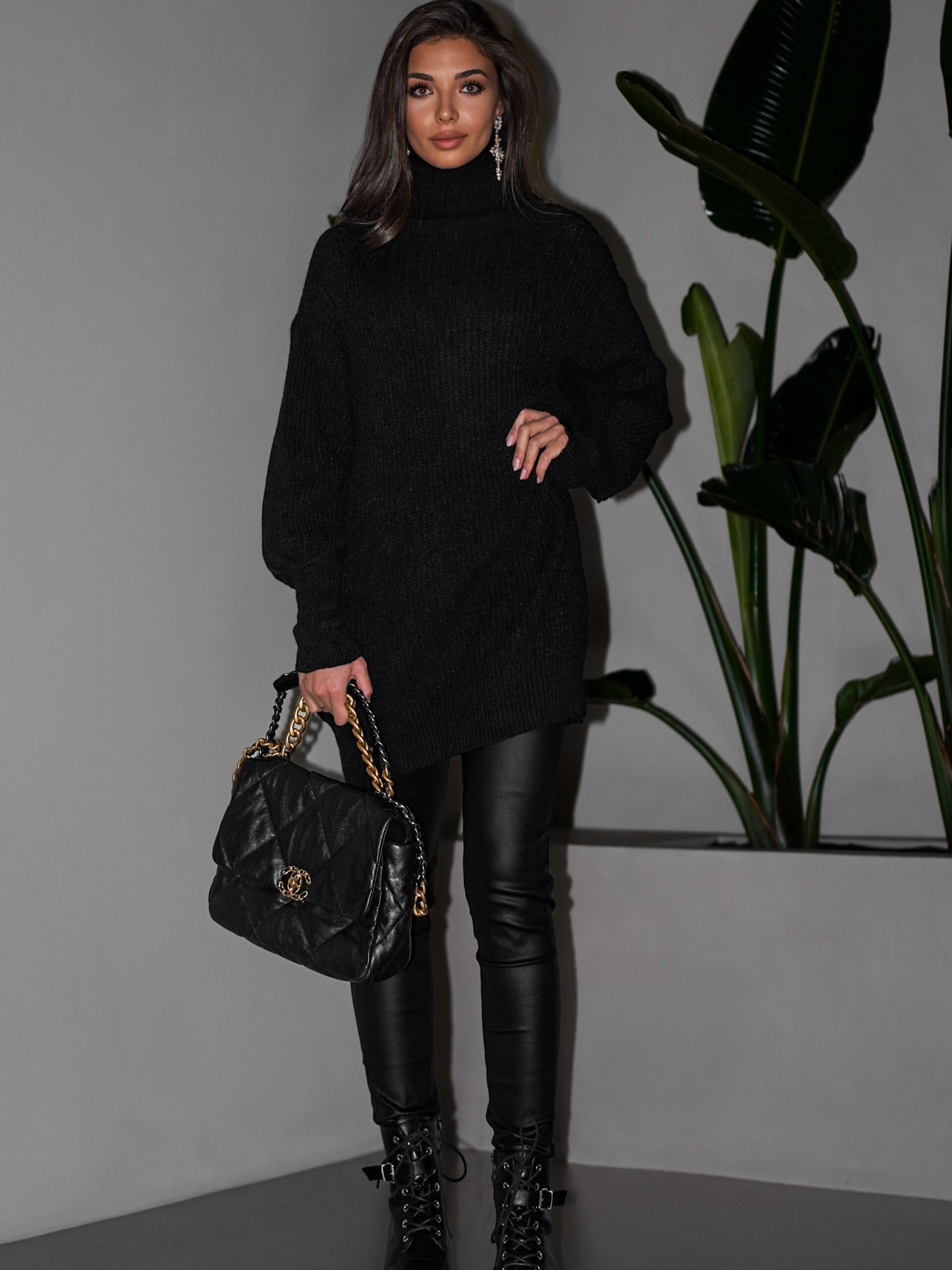 Černý oversize dlouhý svetr CARLA s rolákem Velikost: ONESIZE