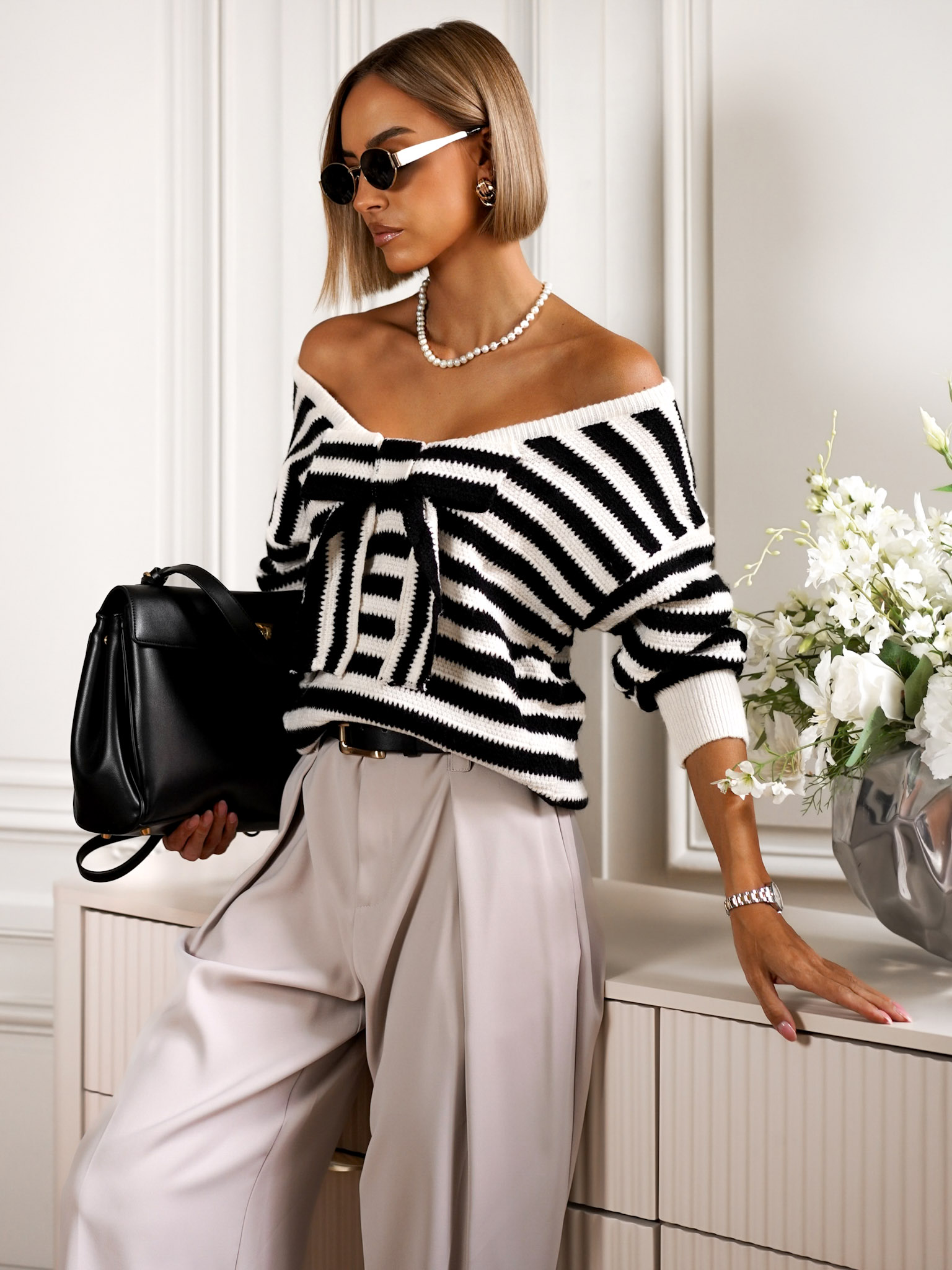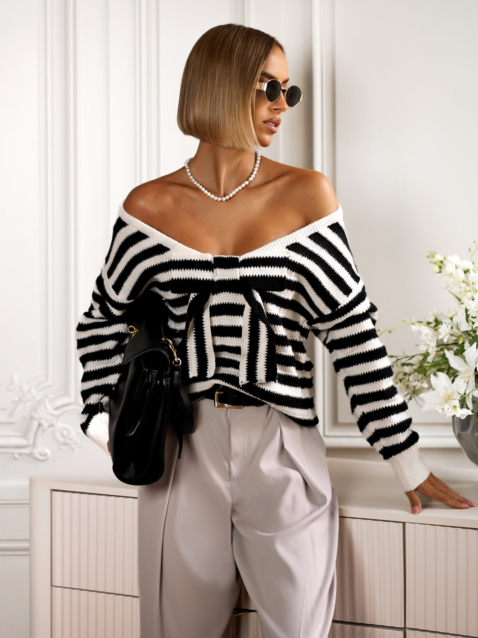 Černý pruhovaný svetr LAIMA s mašlí Velikost: ONESIZE
