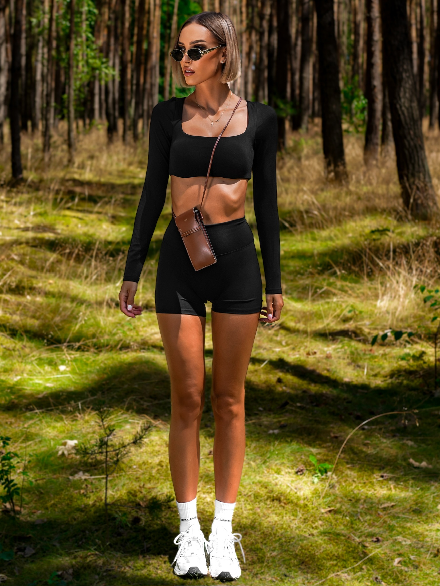 Černý sportovní crop top JIMELA s dlouhým rukávem Velikost: S