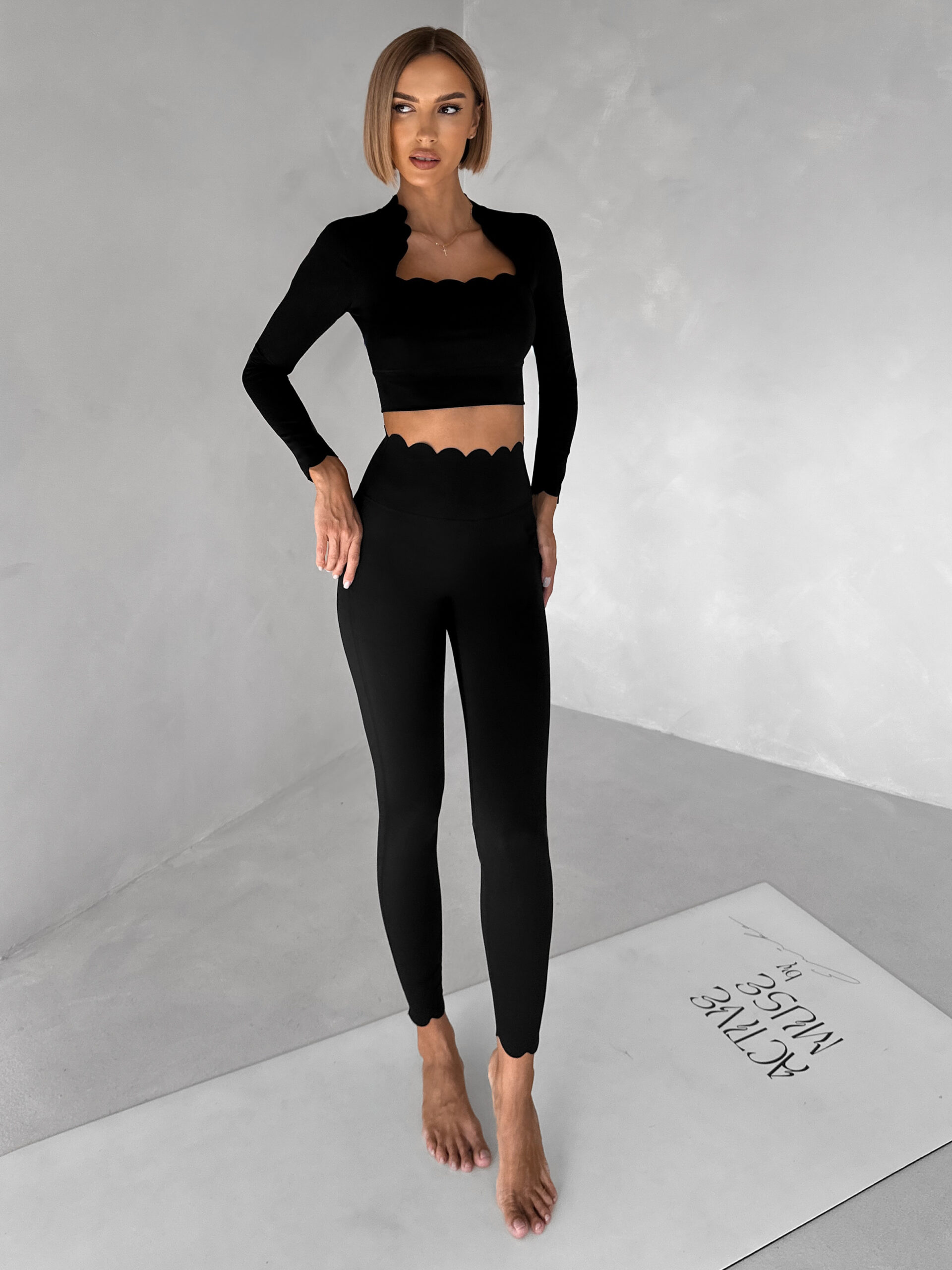 Černý sportovní crop top WALATA s dlouhým rukávem Velikost: S