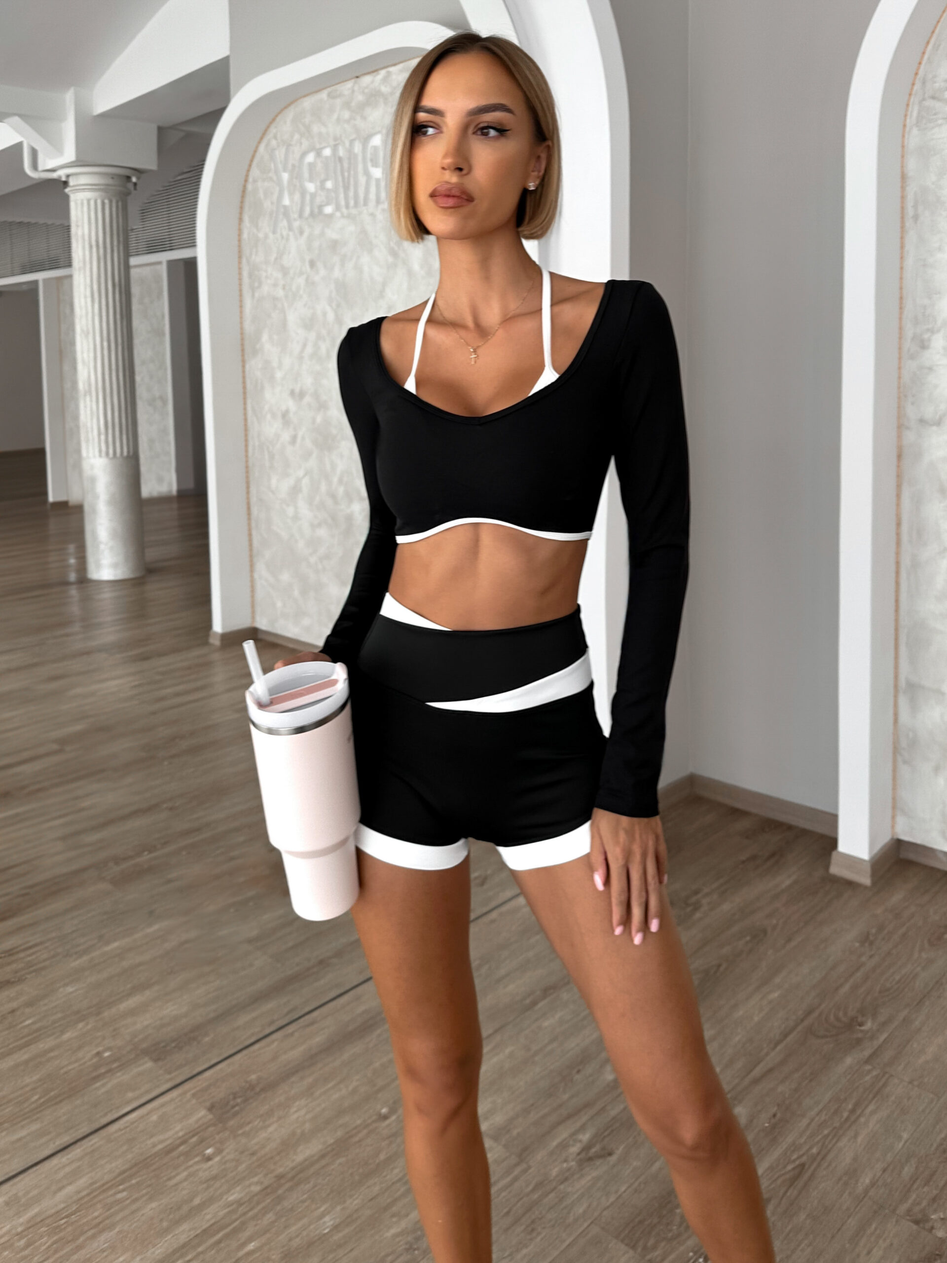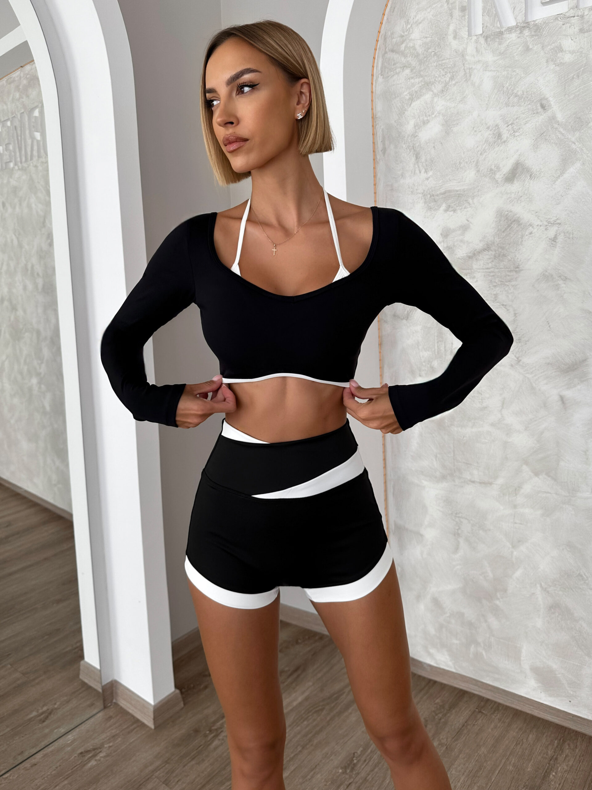 Černý sportovní jóga top RONELY s dlouhým rukávem Velikost: L