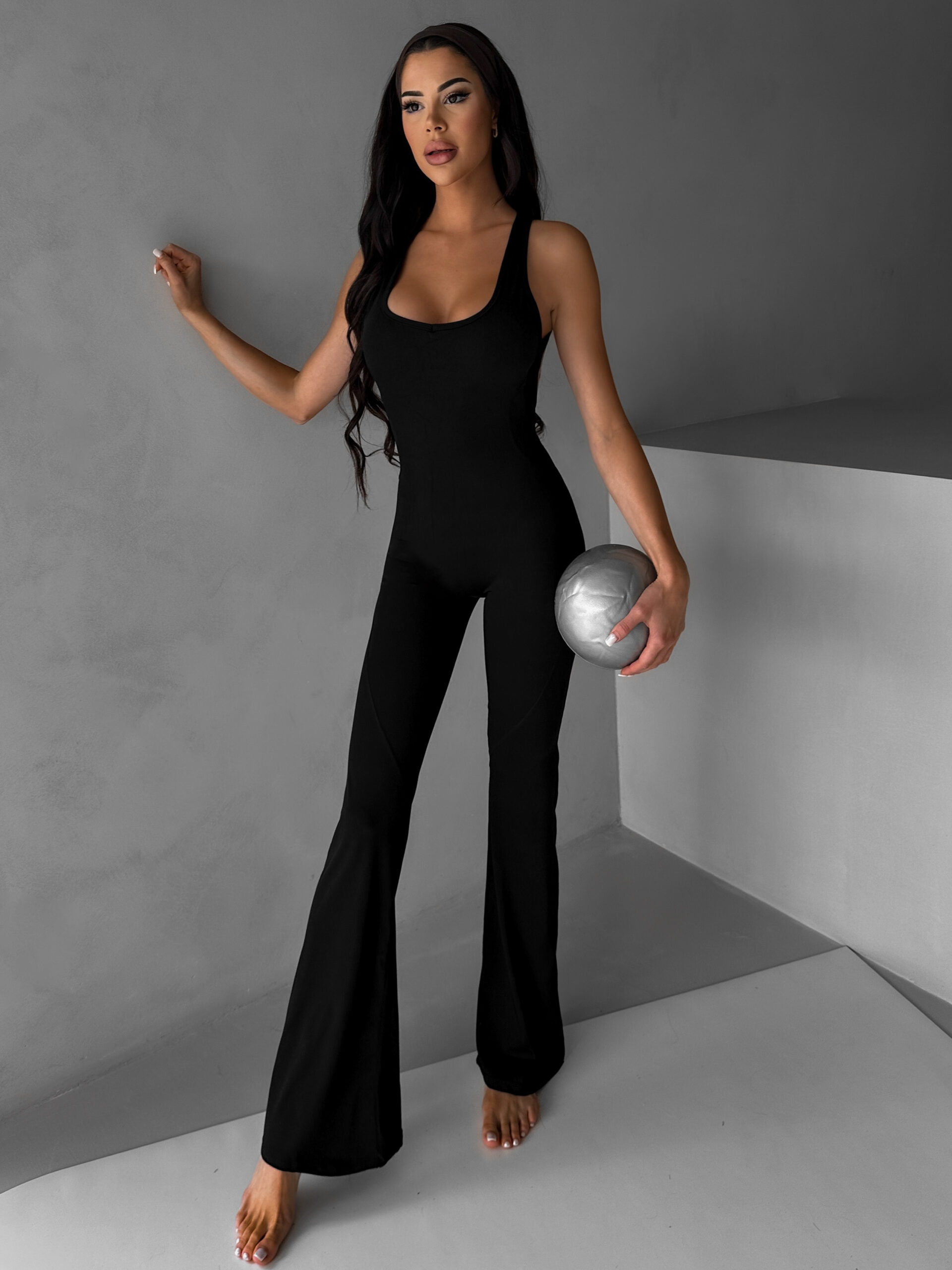 Černý sportovní tvarující overal WARATY Velikost: S