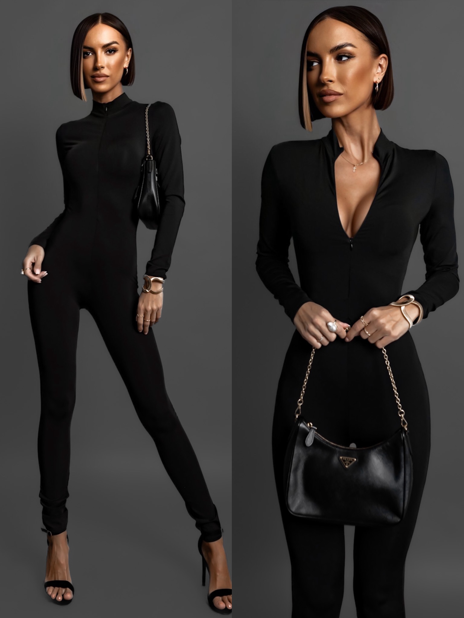 Černý stahující overal PENELOPA se zipem Velikost: M/L
