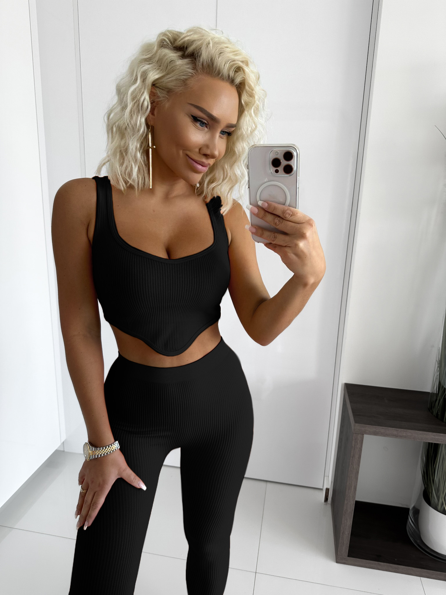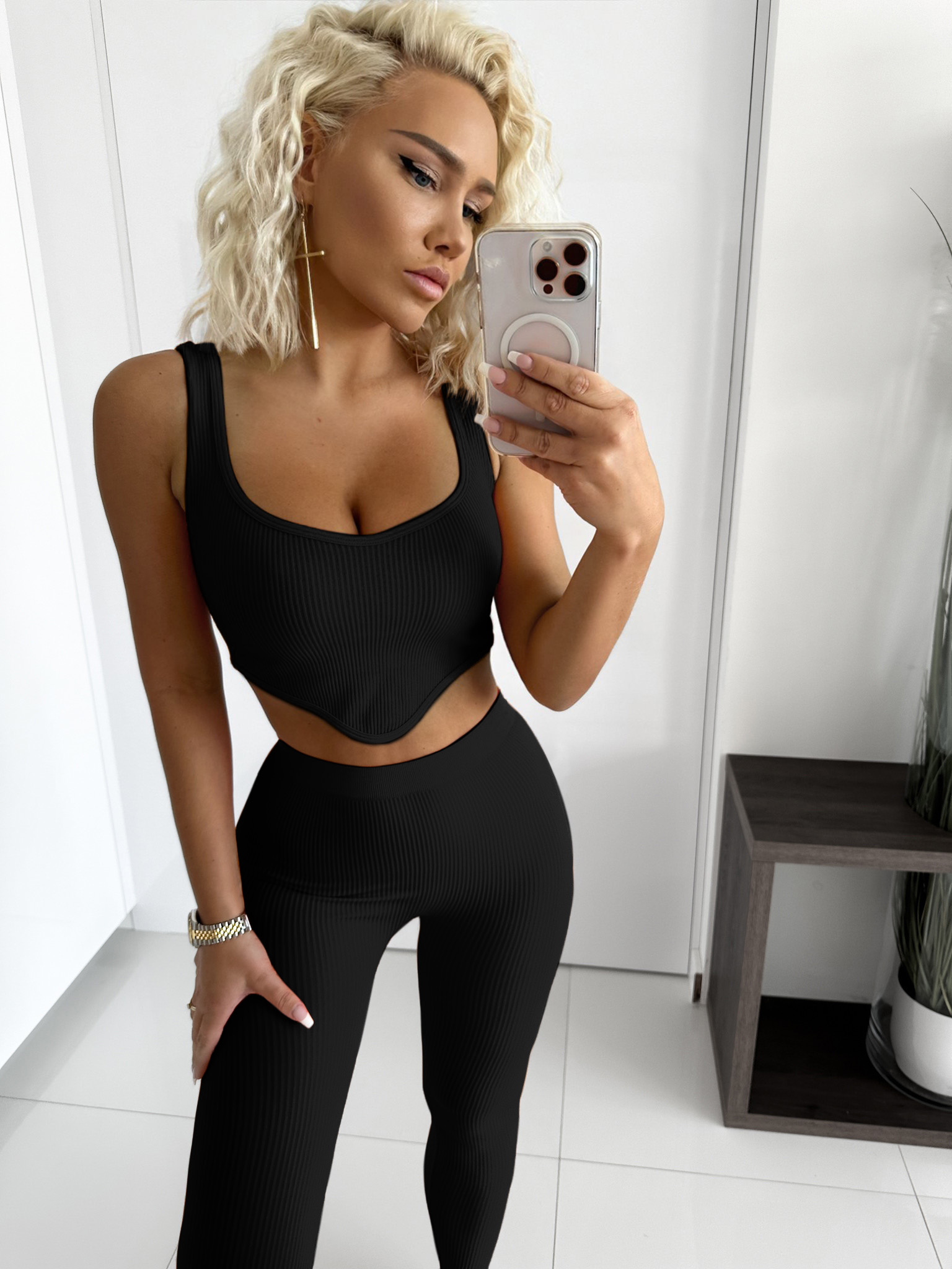 Černý žebrovaný dvoudílný komplet NATALISE Velikost: M/L