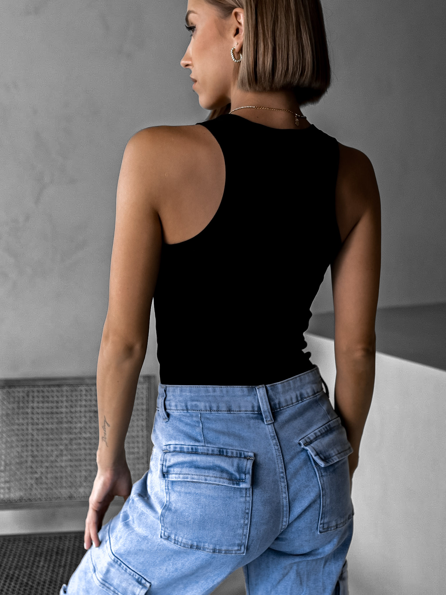 Černý žebrovaný top MOMMO Velikost: S/M