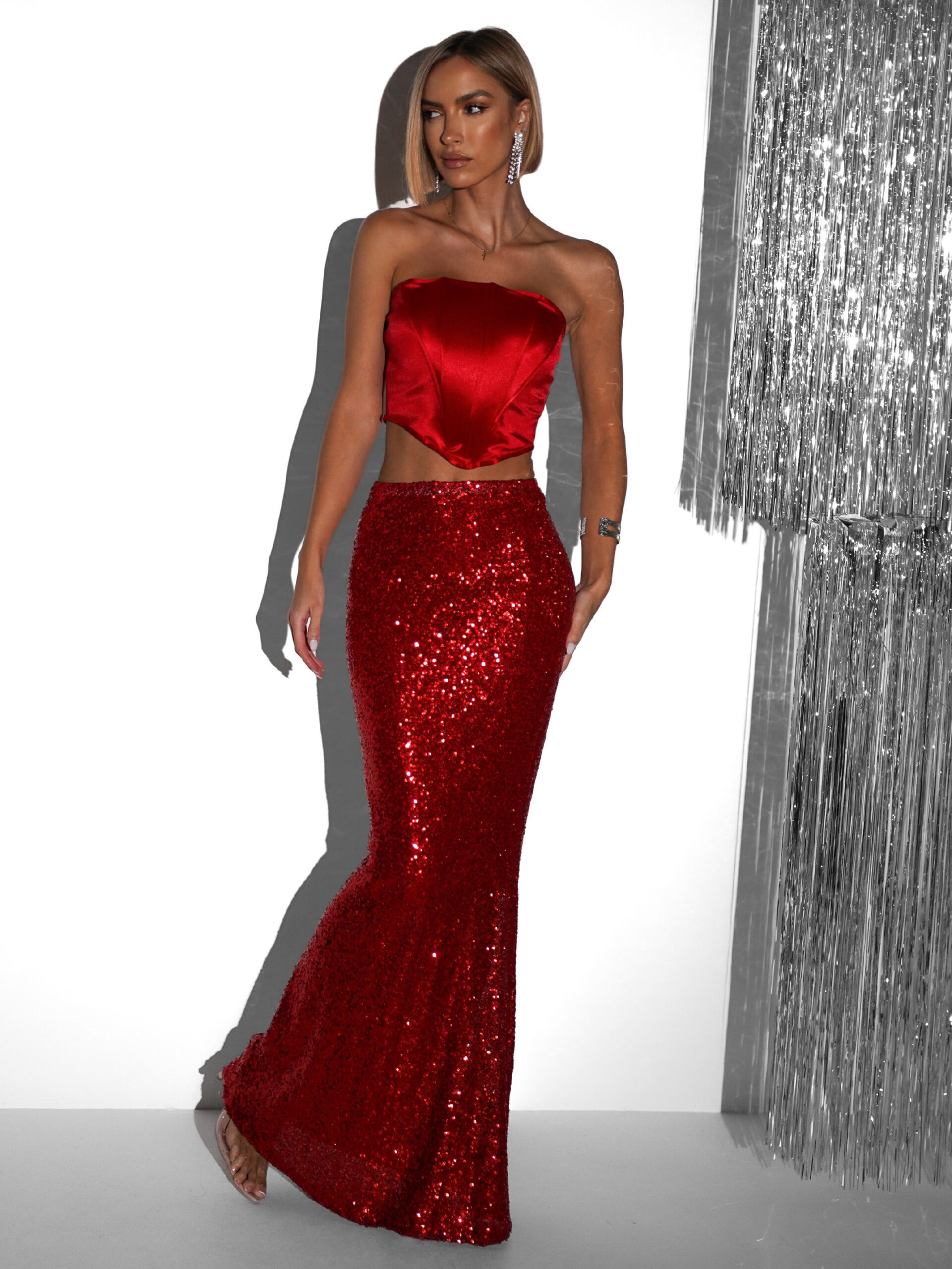 Červená flitrovaná dlouhá sukně ESTRELLA Velikost: ONESIZE
