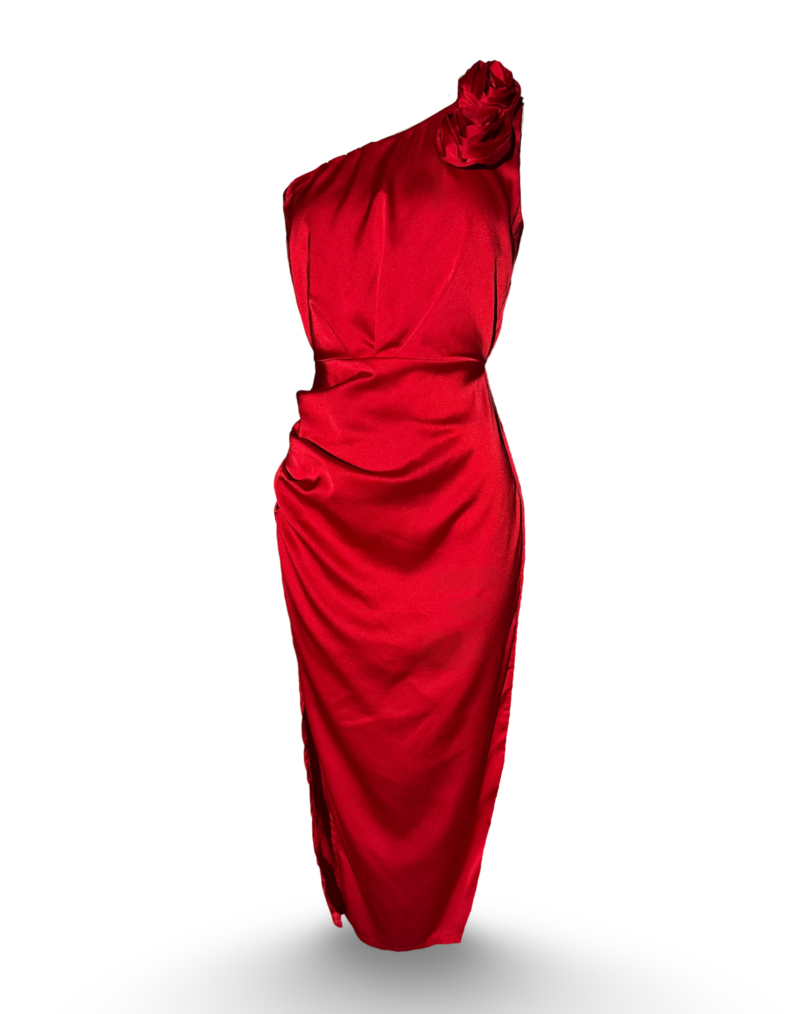 Červené asymetrické saténové šaty ROULES Velikost: ONESIZE