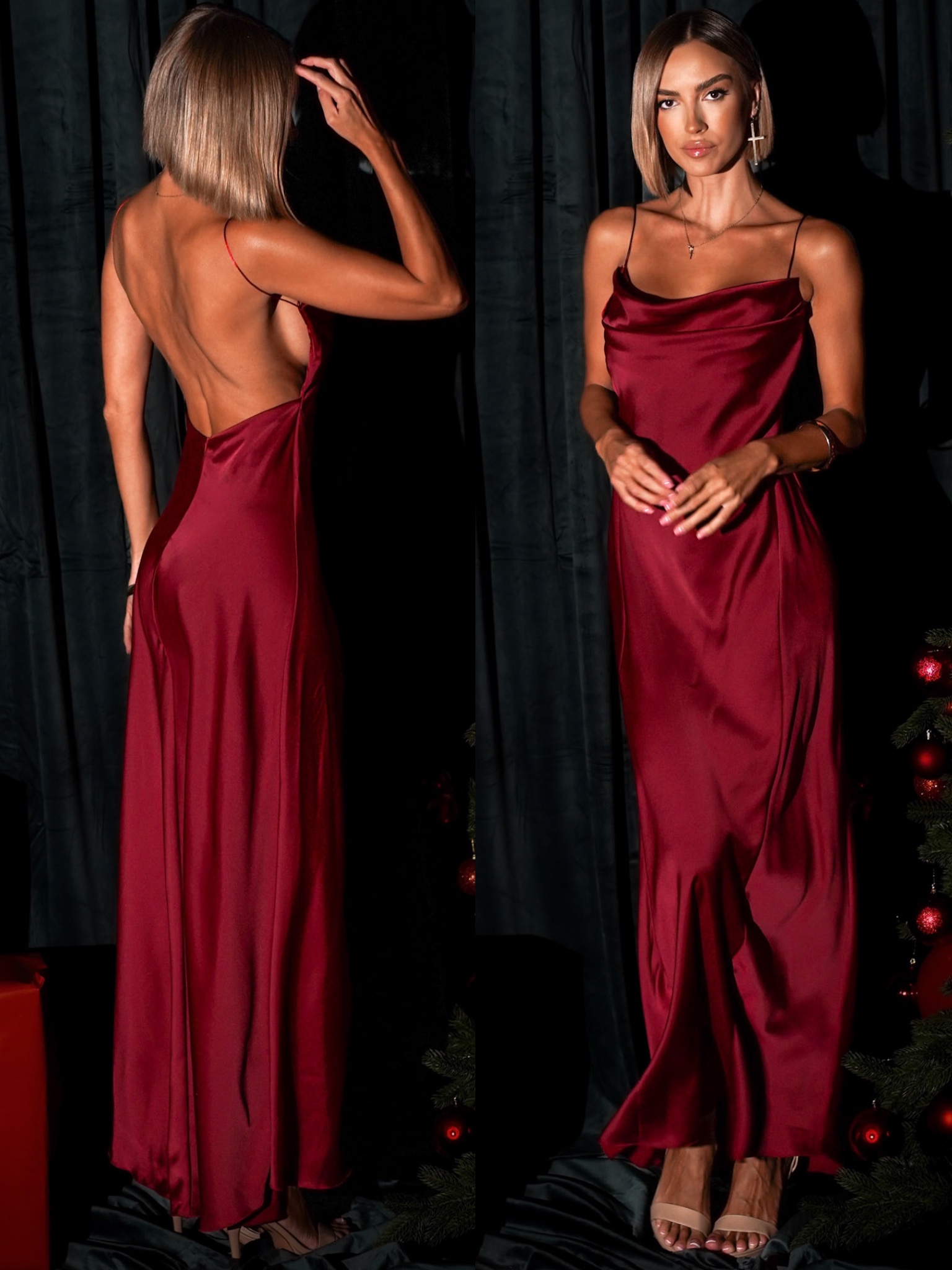 Červené dlouhé saténové šaty UNUTA Velikost: ONESIZE