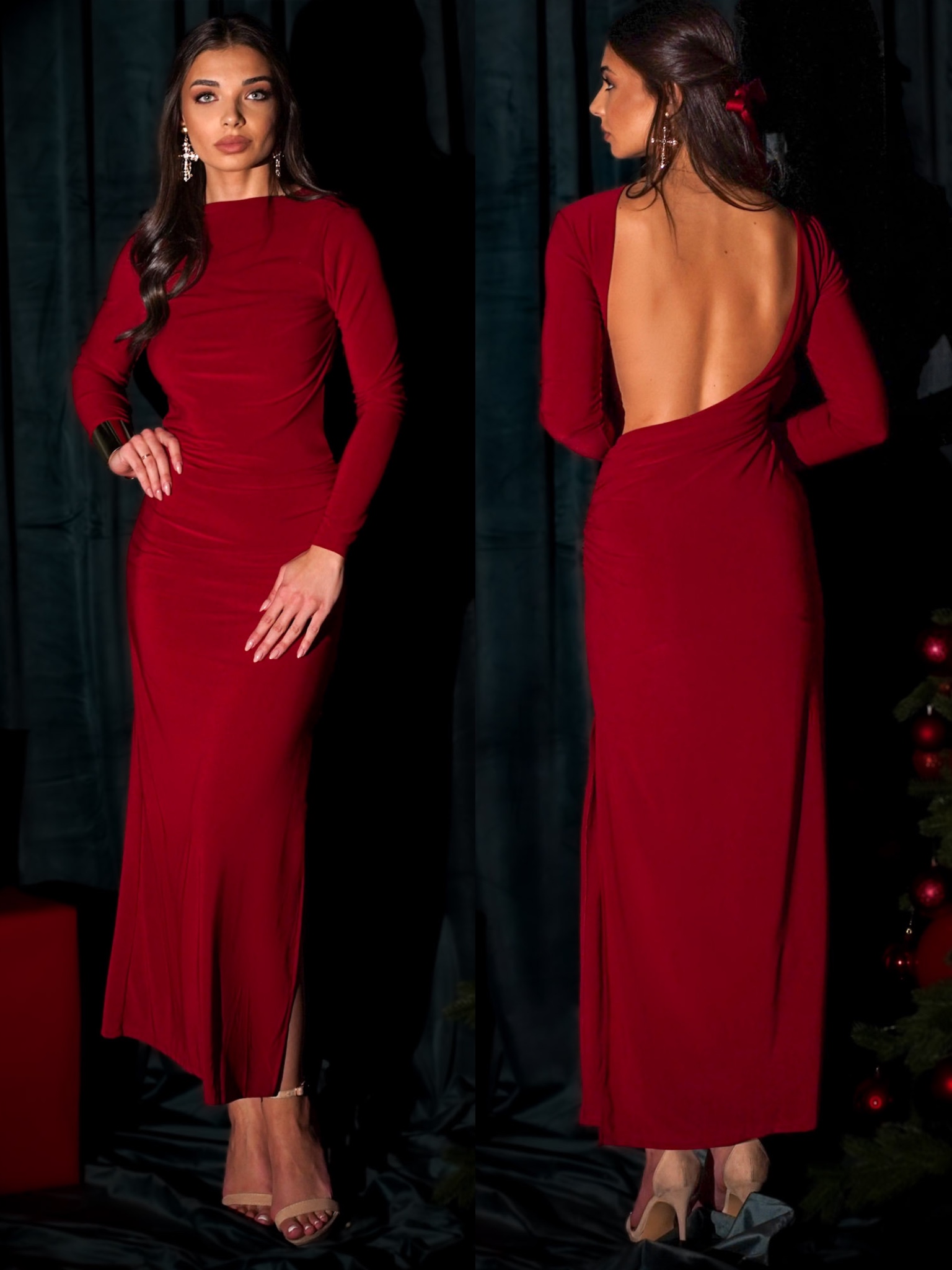 Červené elegantní dlouhé jednoduché šaty ASPASIA Velikost: ONESIZE
