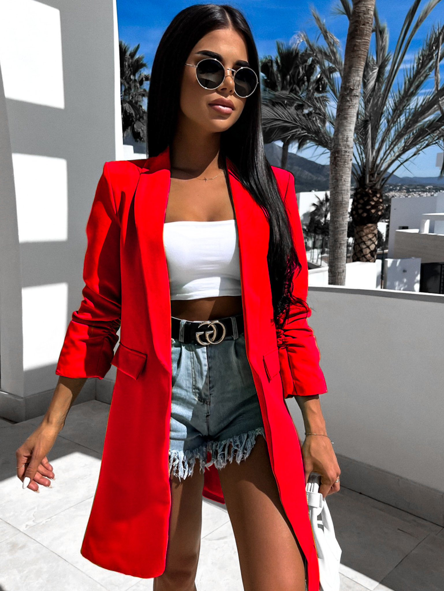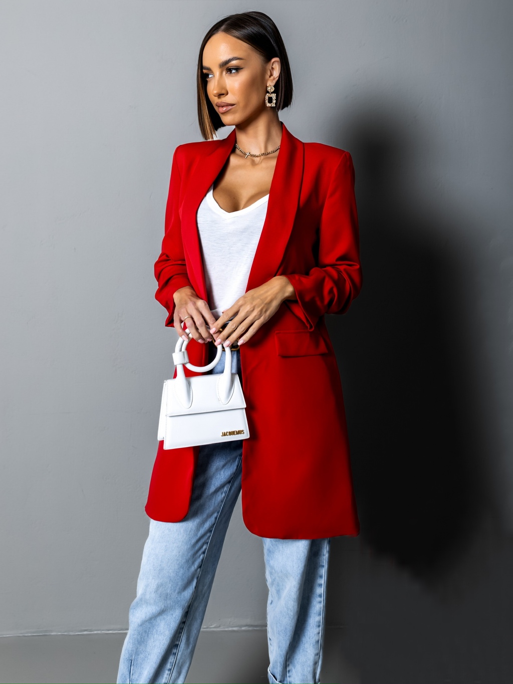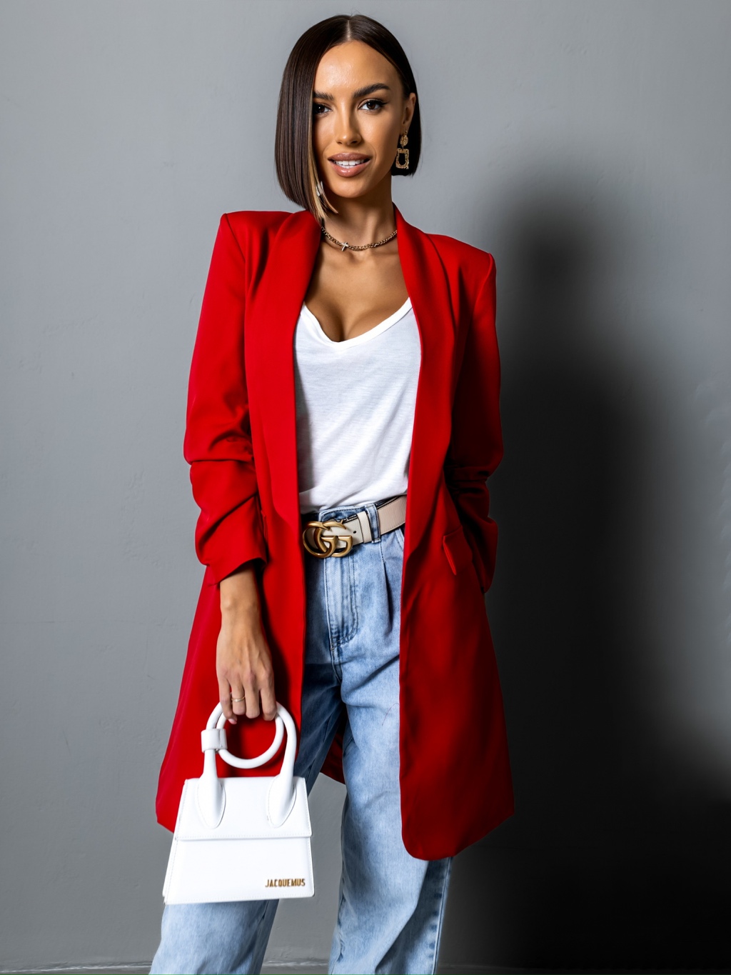 Červené elegantní sako CASTIEL otevřeného stylu Velikost: ONESIZE