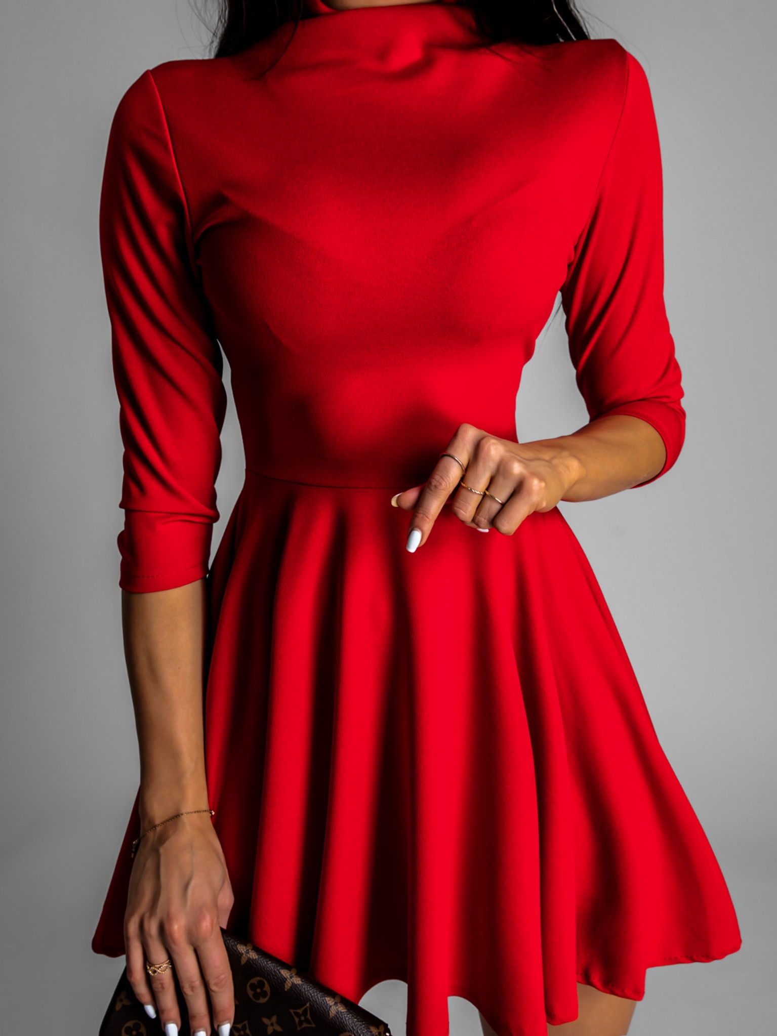 Červené elegantní šaty GROUND s dlouhým rukávem - Obrázek 3