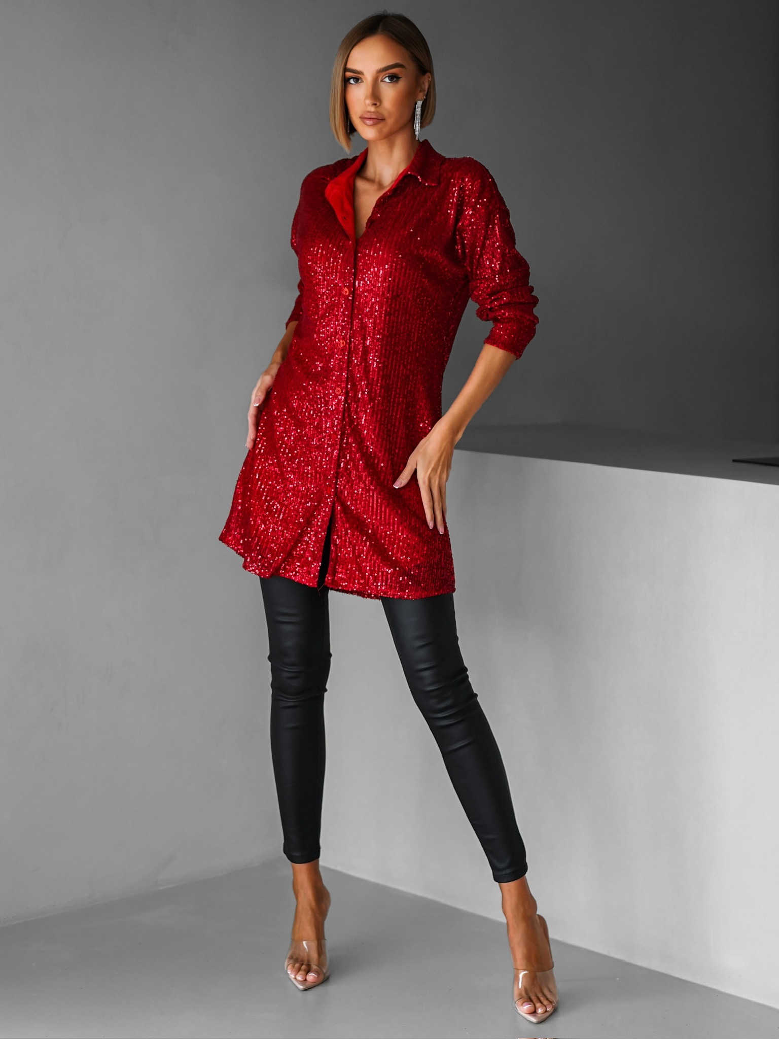 Červené flitrované košilové šaty LEXURY na knoflíky Velikost: ONESIZE