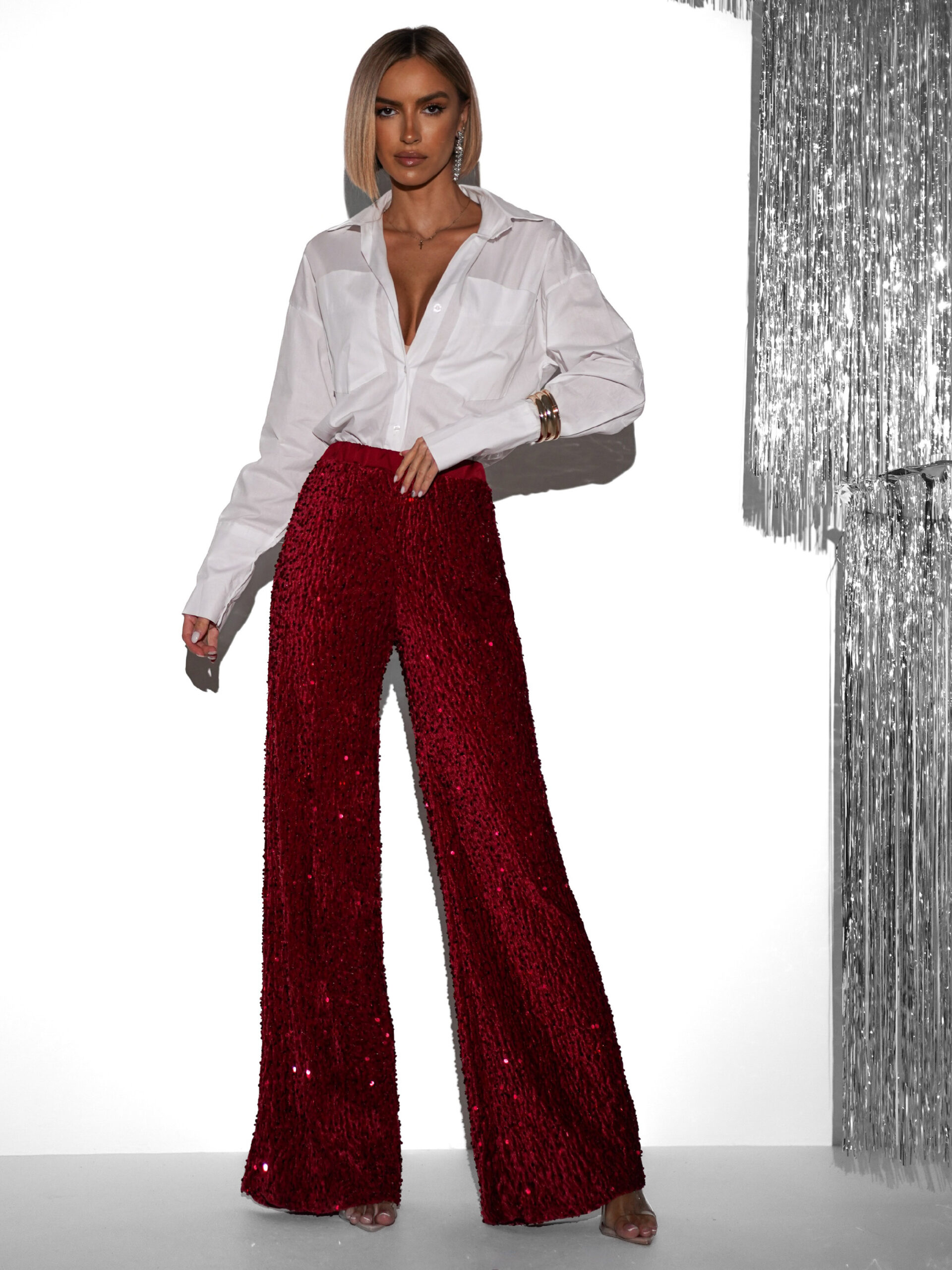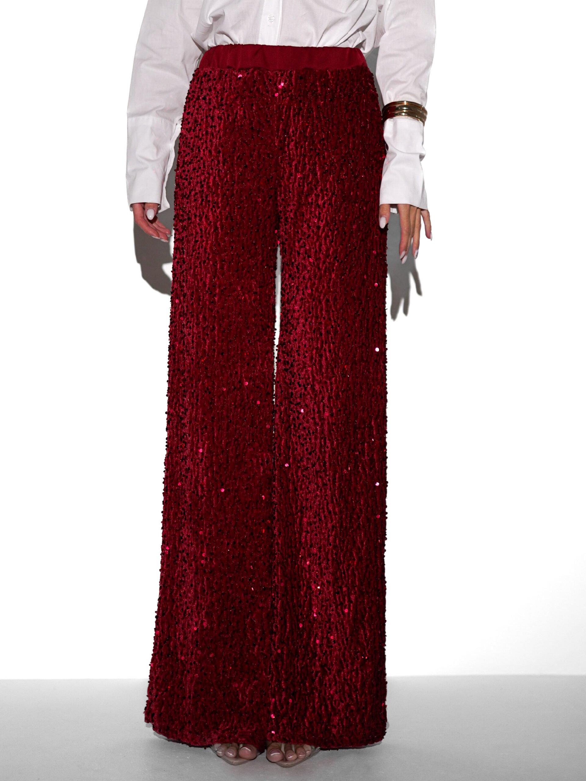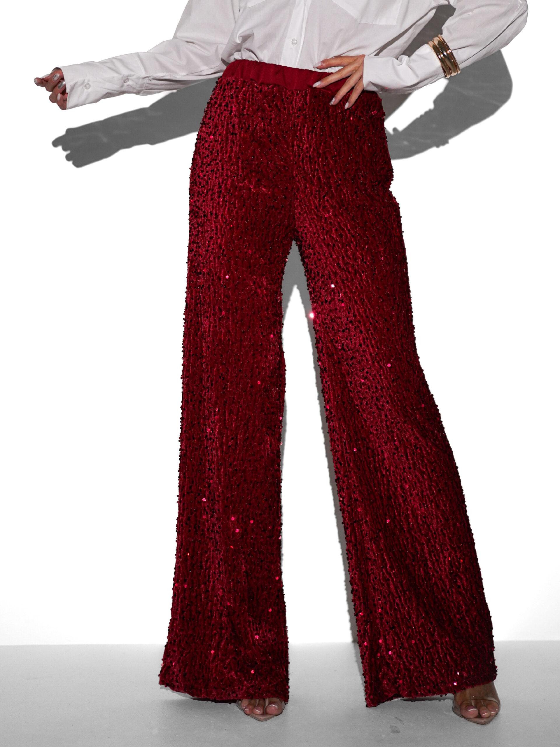 Červené flitrované široké kalhoty ONNILO Velikost: ONESIZE