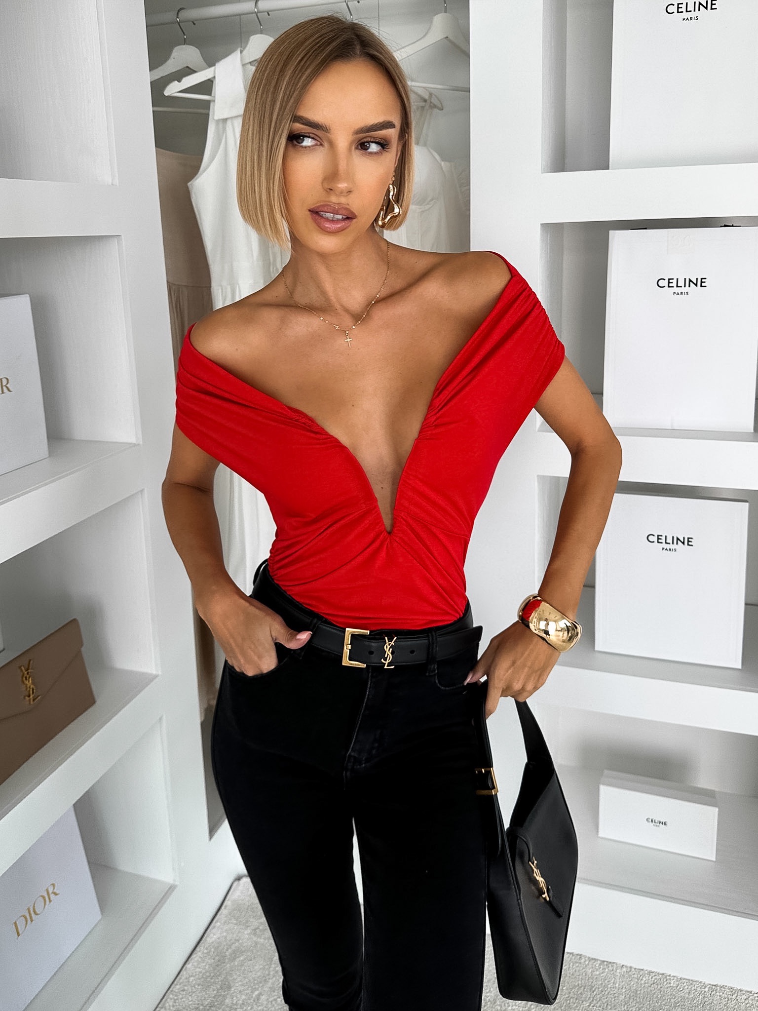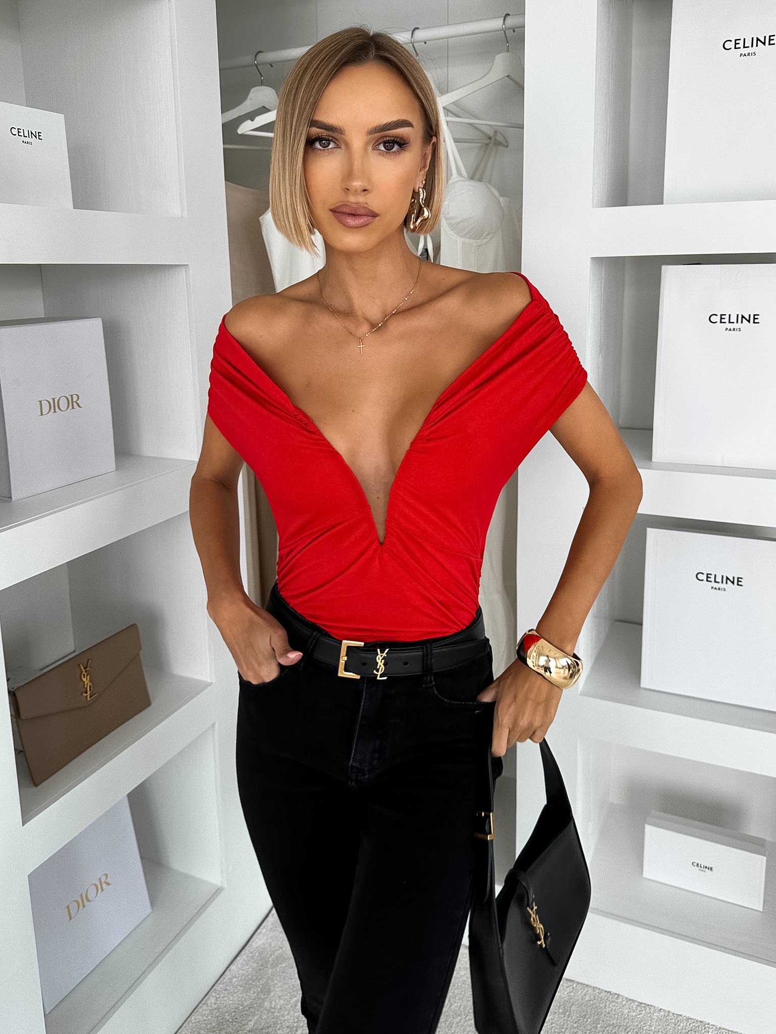 Červené společenské body AIBARA s výstřihem Velikost: ONESIZE