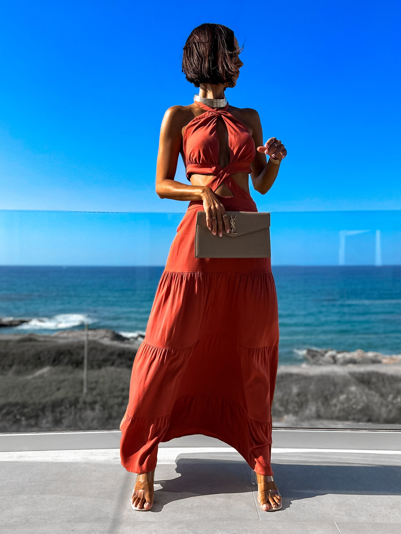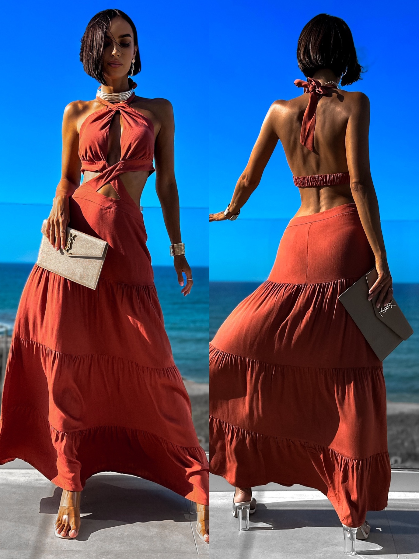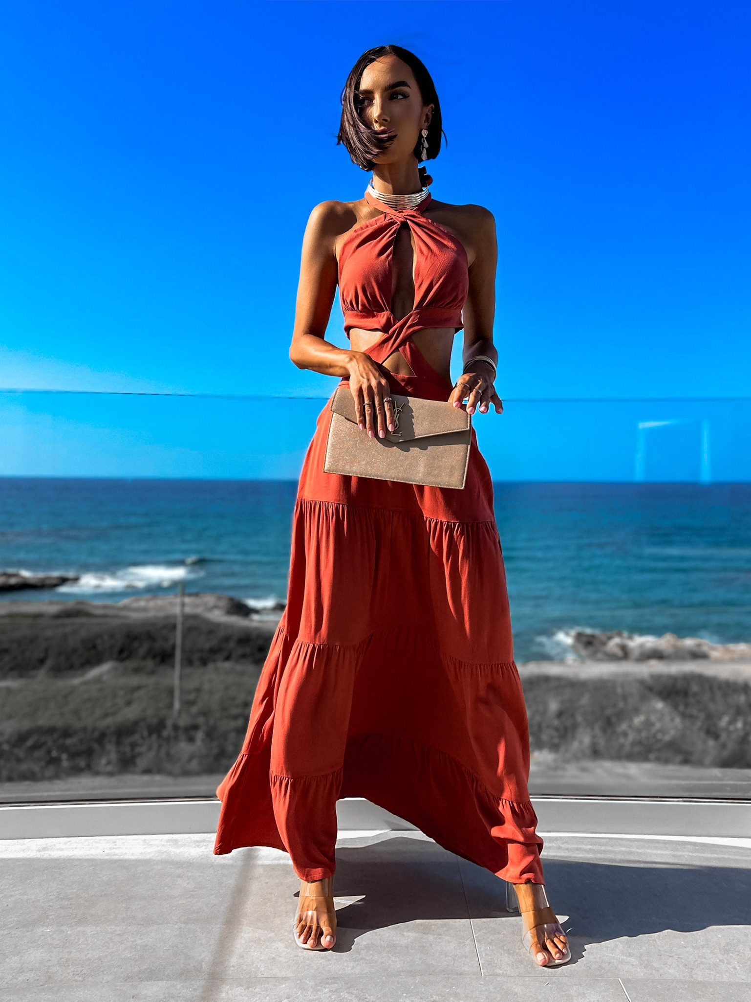 Cihlové elegantní šaty SARAINE Velikost: M/L