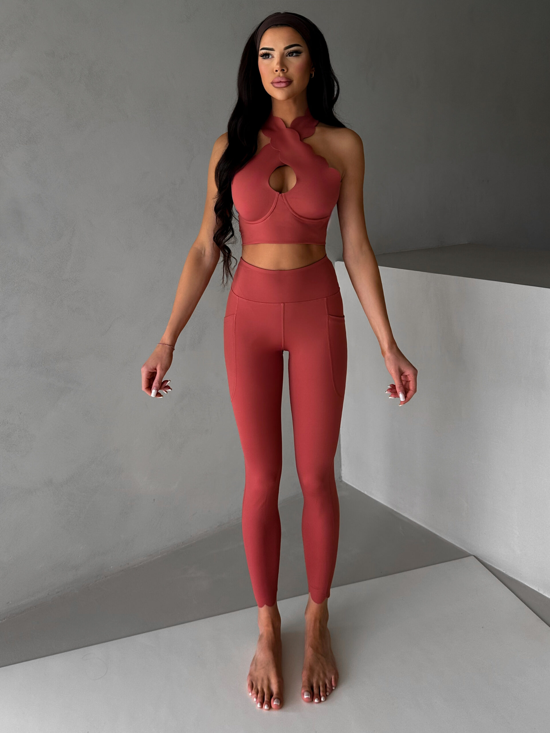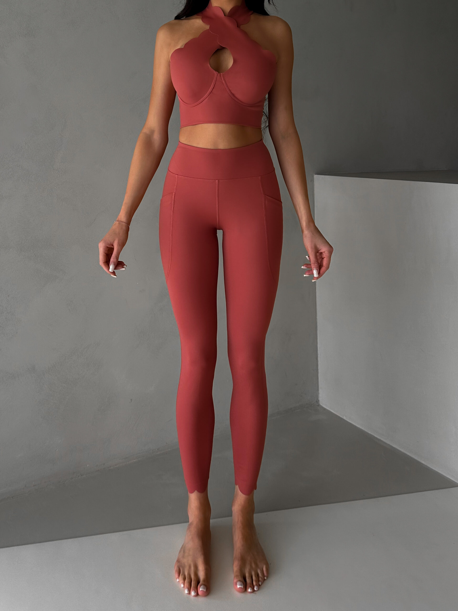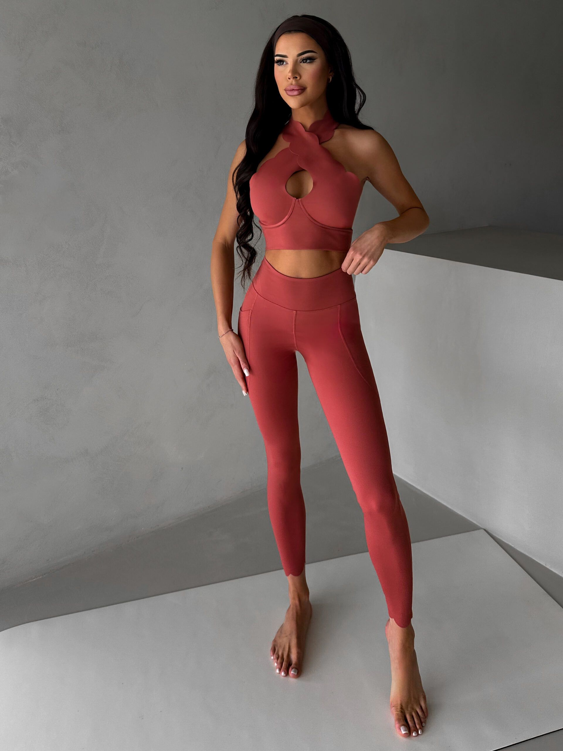 Cihlové sportovní push up legíny WEMIROS Velikost: M