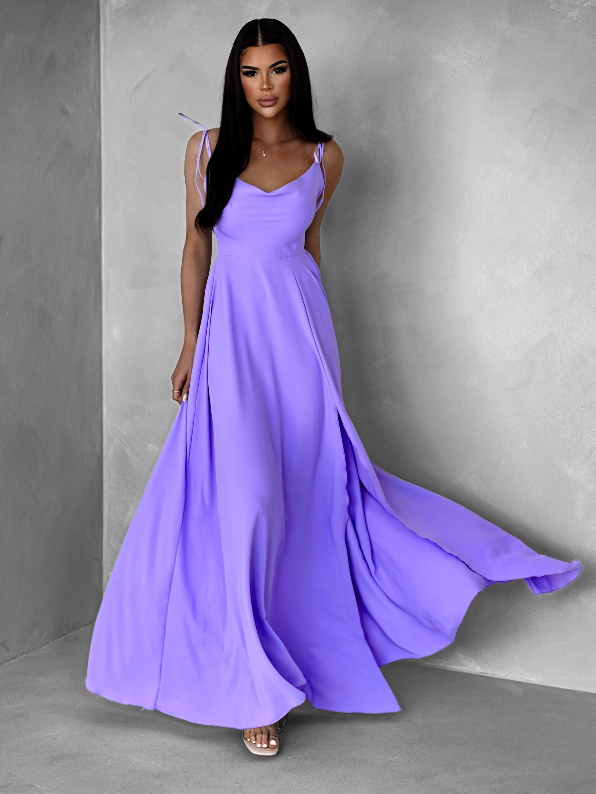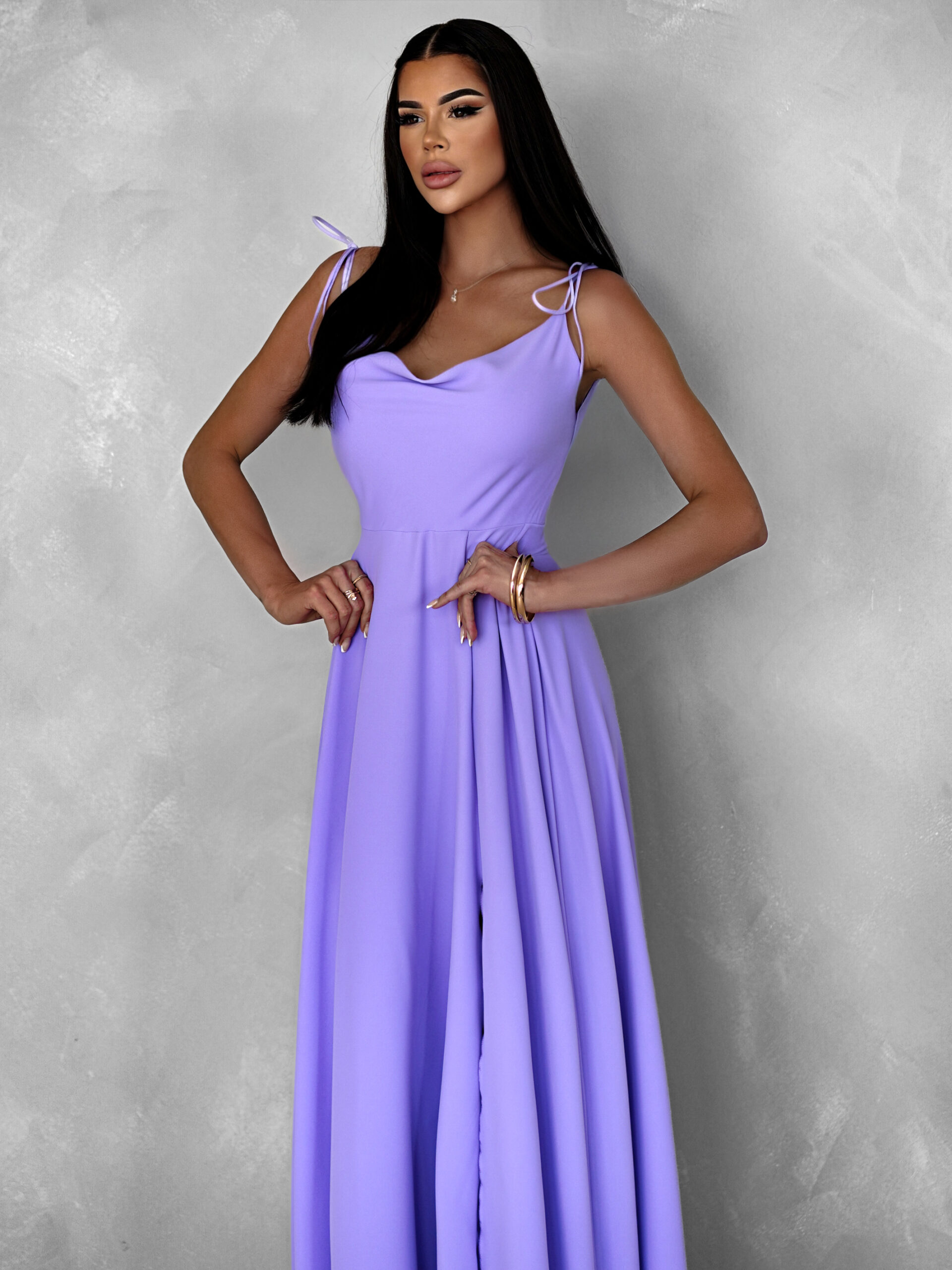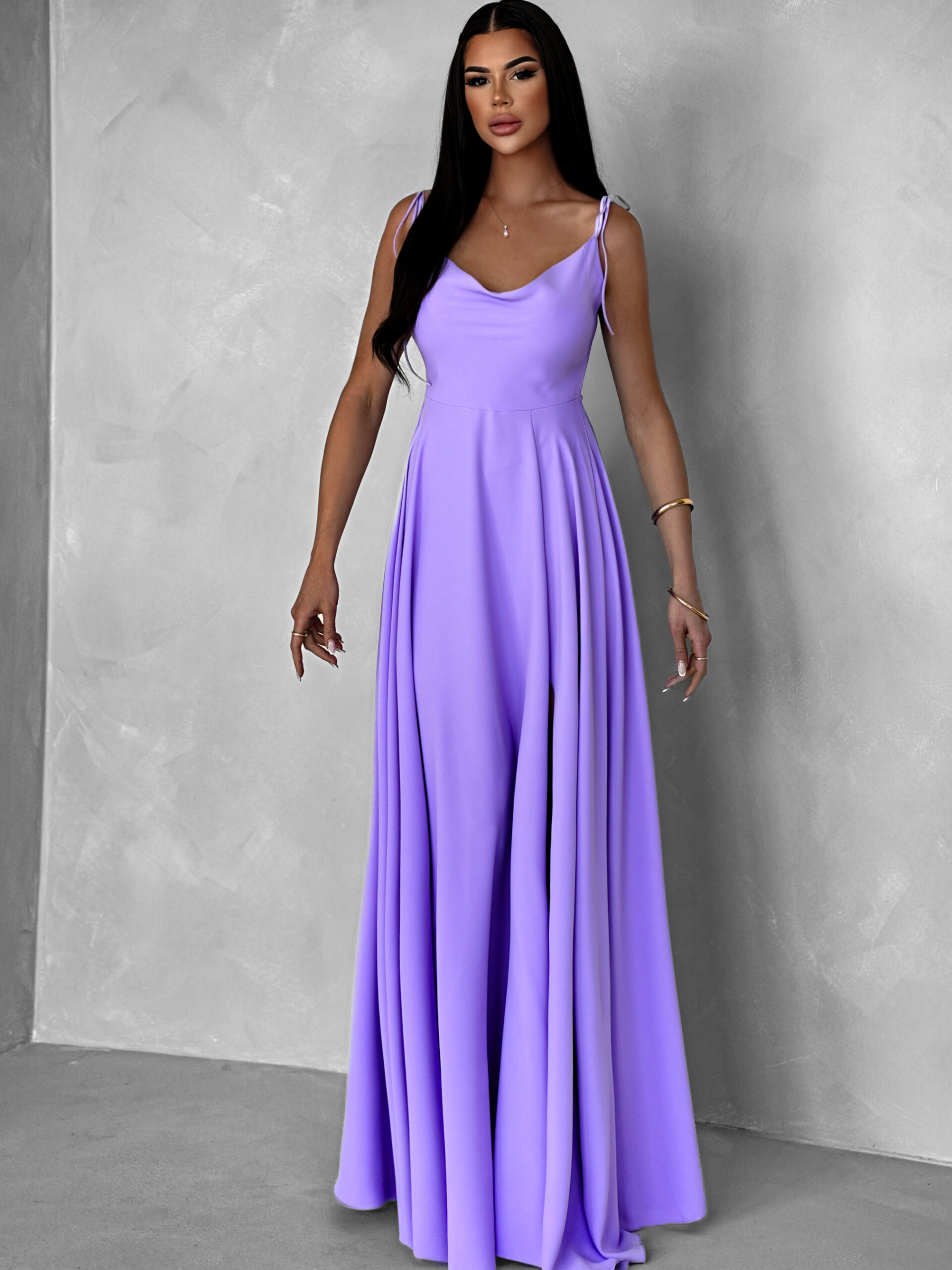 Fialové dlouhé splývavé šaty LERDISEL na ramínka Velikost: ONESIZE