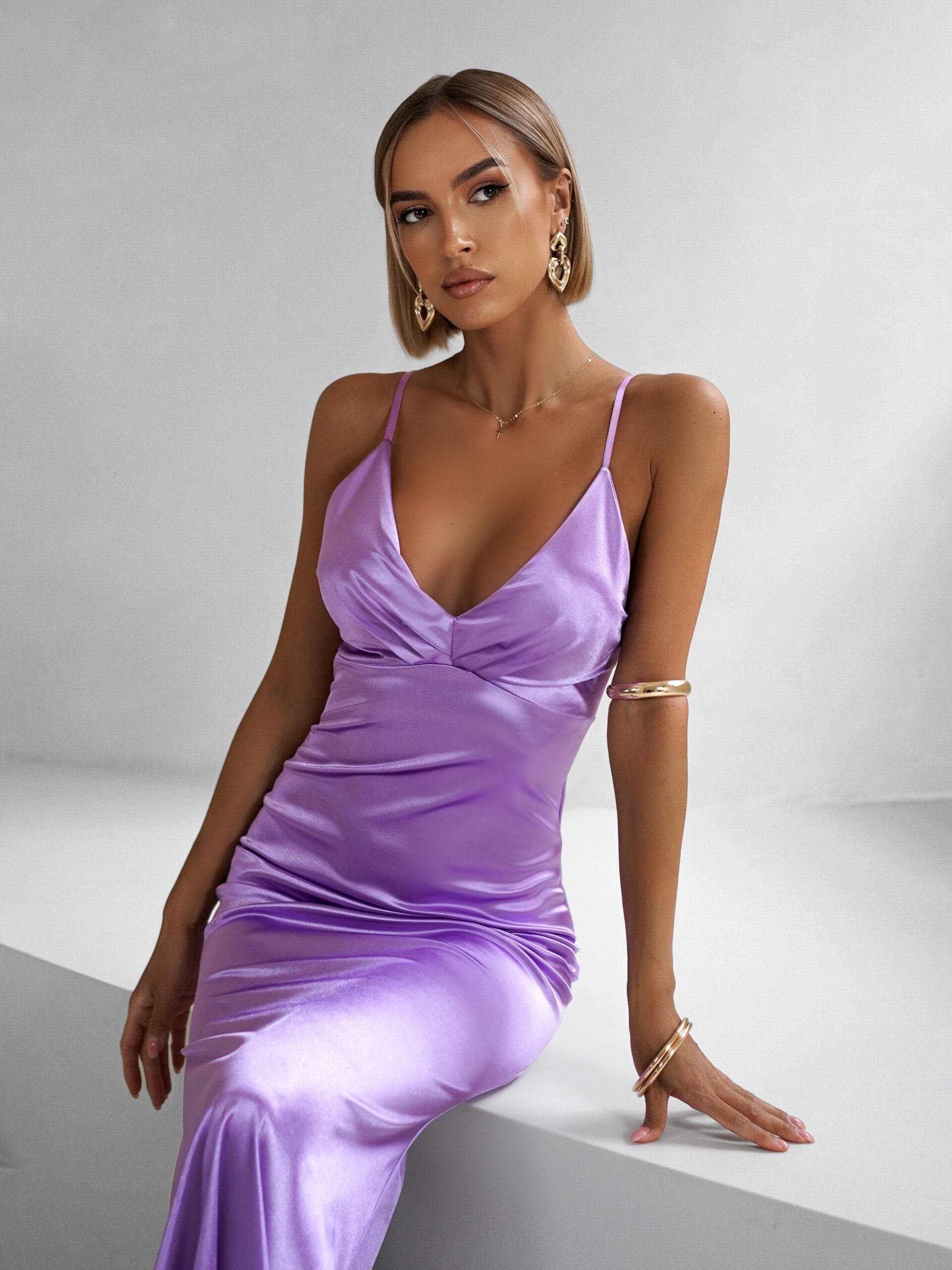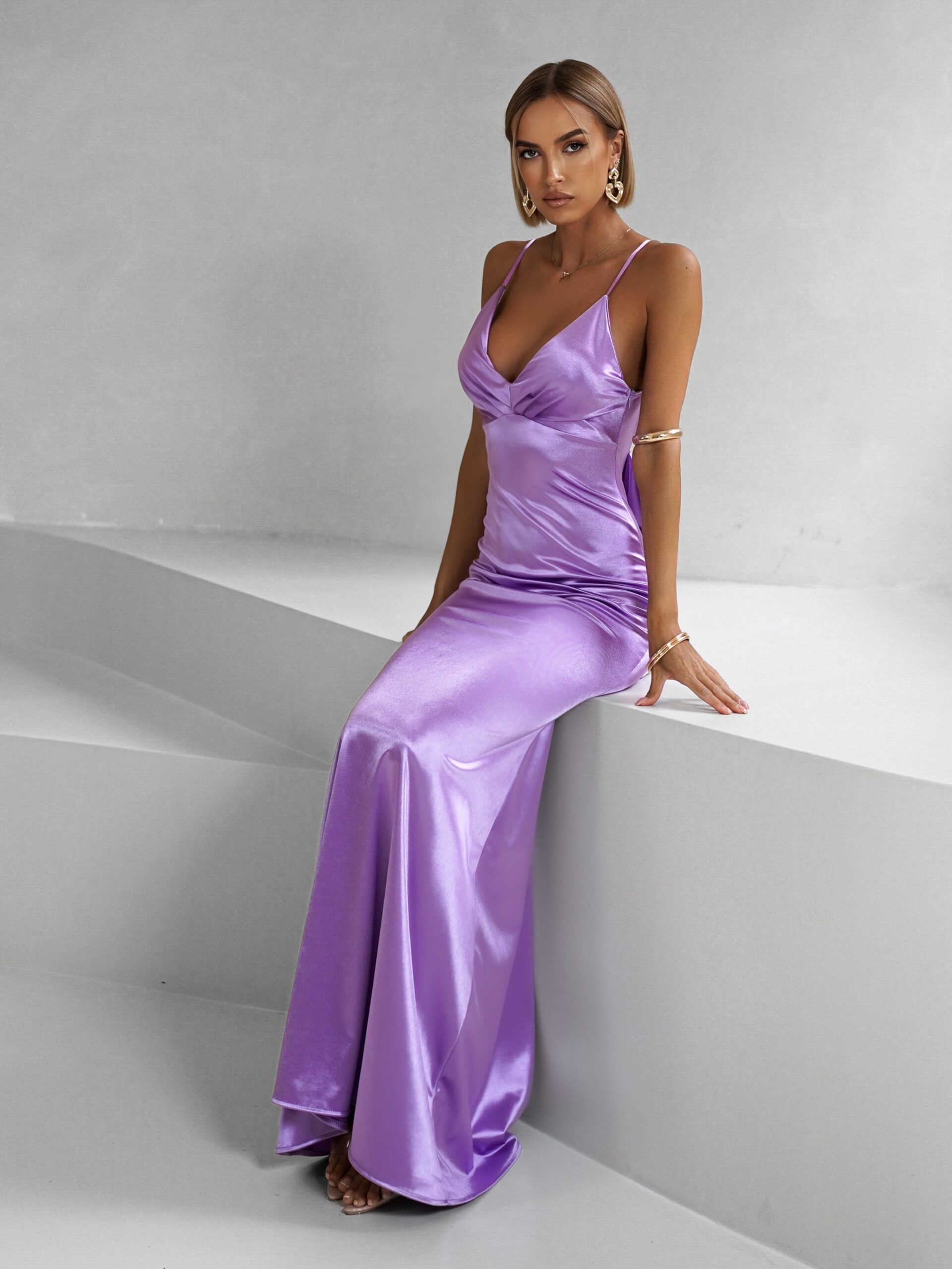 Fialové dlouhé společenské šaty LIFOSA Velikost: ONESIZE