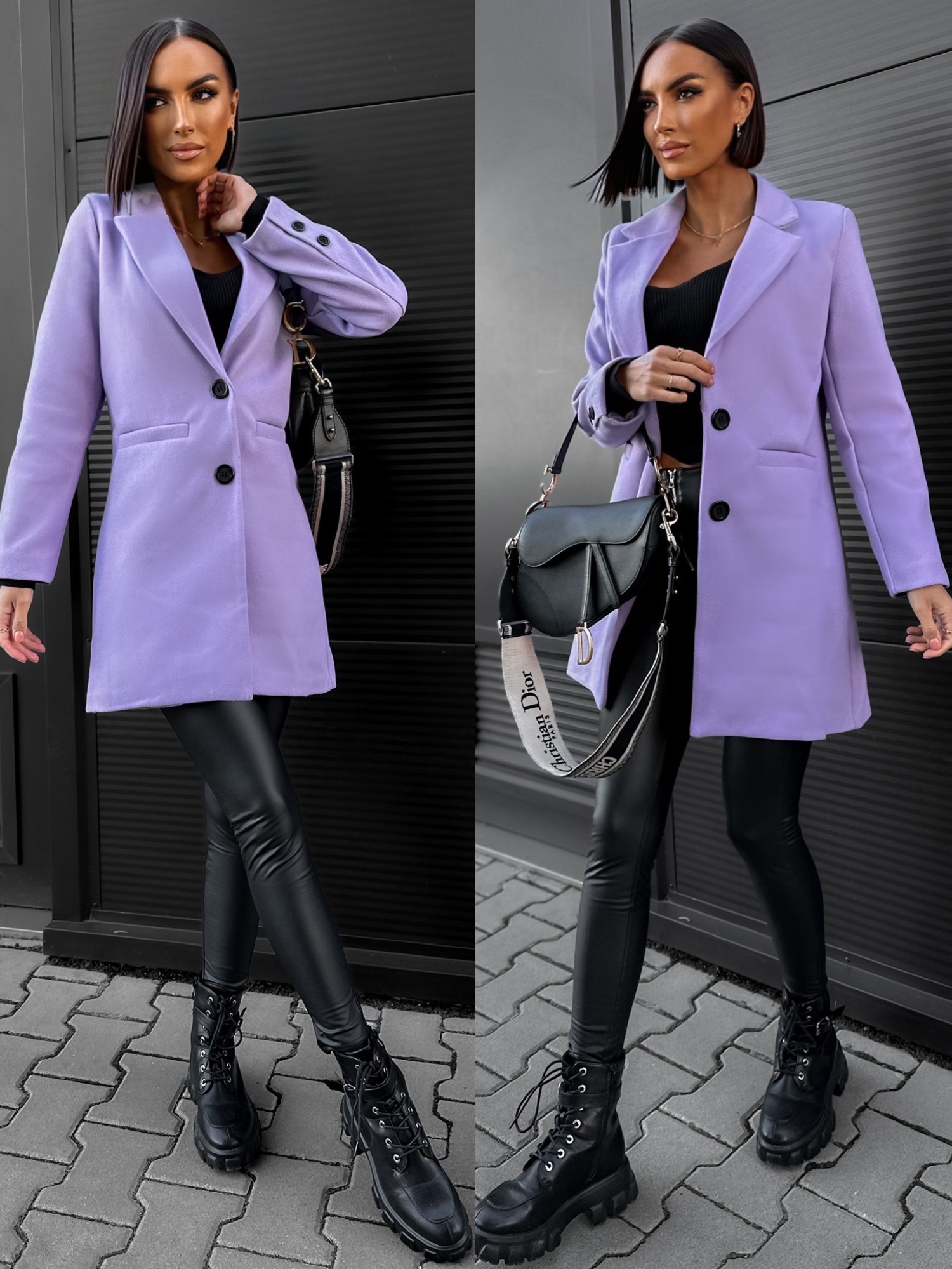 Fialový flaušový kabát NOAM s knoflíky Velikost: ONESIZE