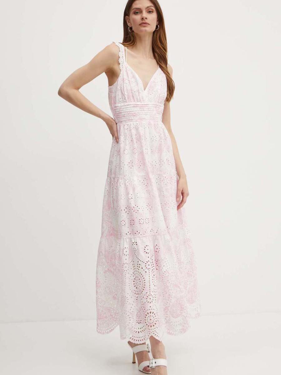dámské bílo růžové šaty od Guess.Šaty jsou v zadu na šněrování a mají nastavitelné remínka.Materiál:100% bavlna