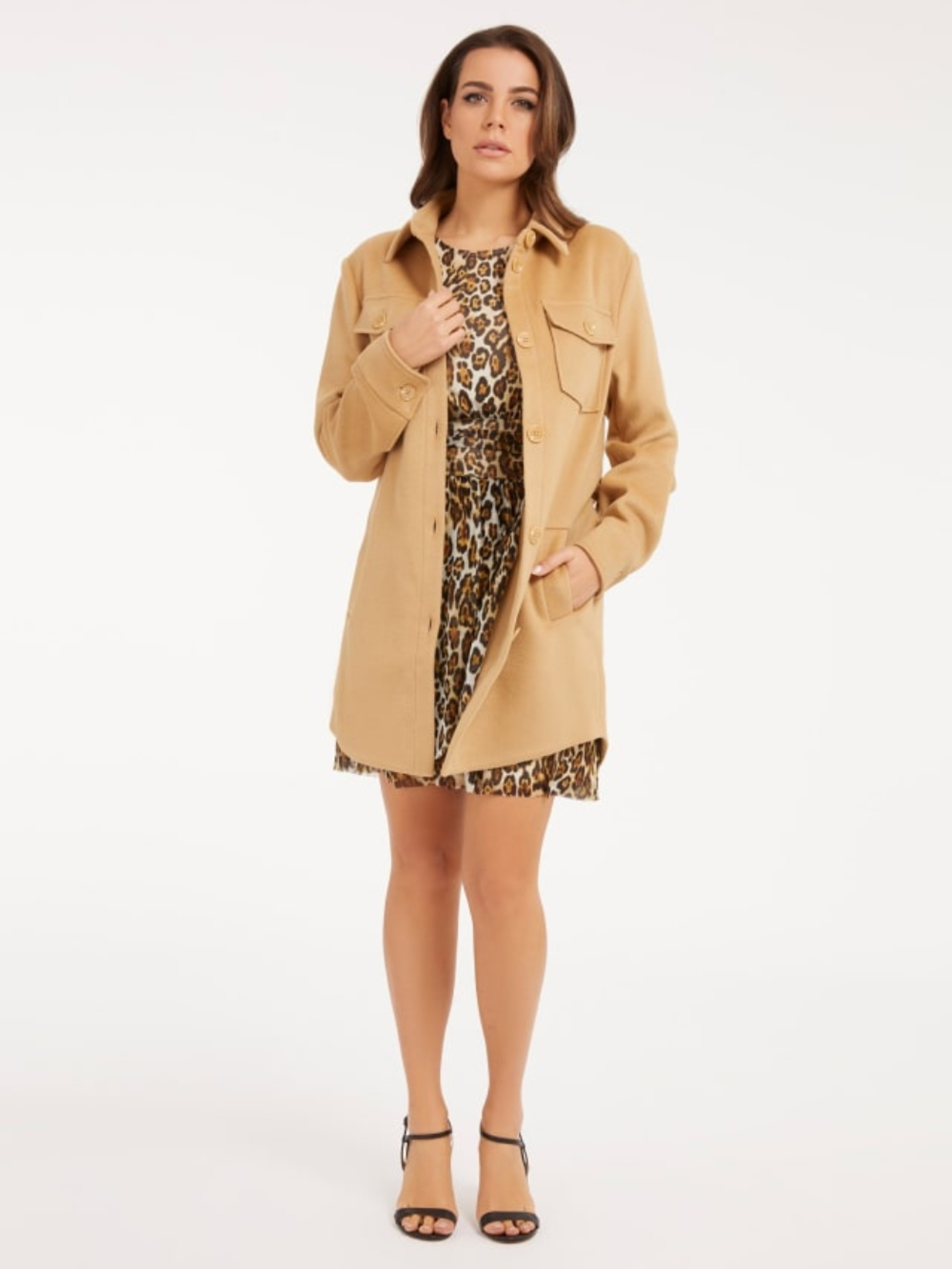 dámský béžový kabát od Guess.Kabát má zapínání na knoflíky a v pase pásek.Materiál:70 % Polyester30 % VlnaStřih:Regular Fit