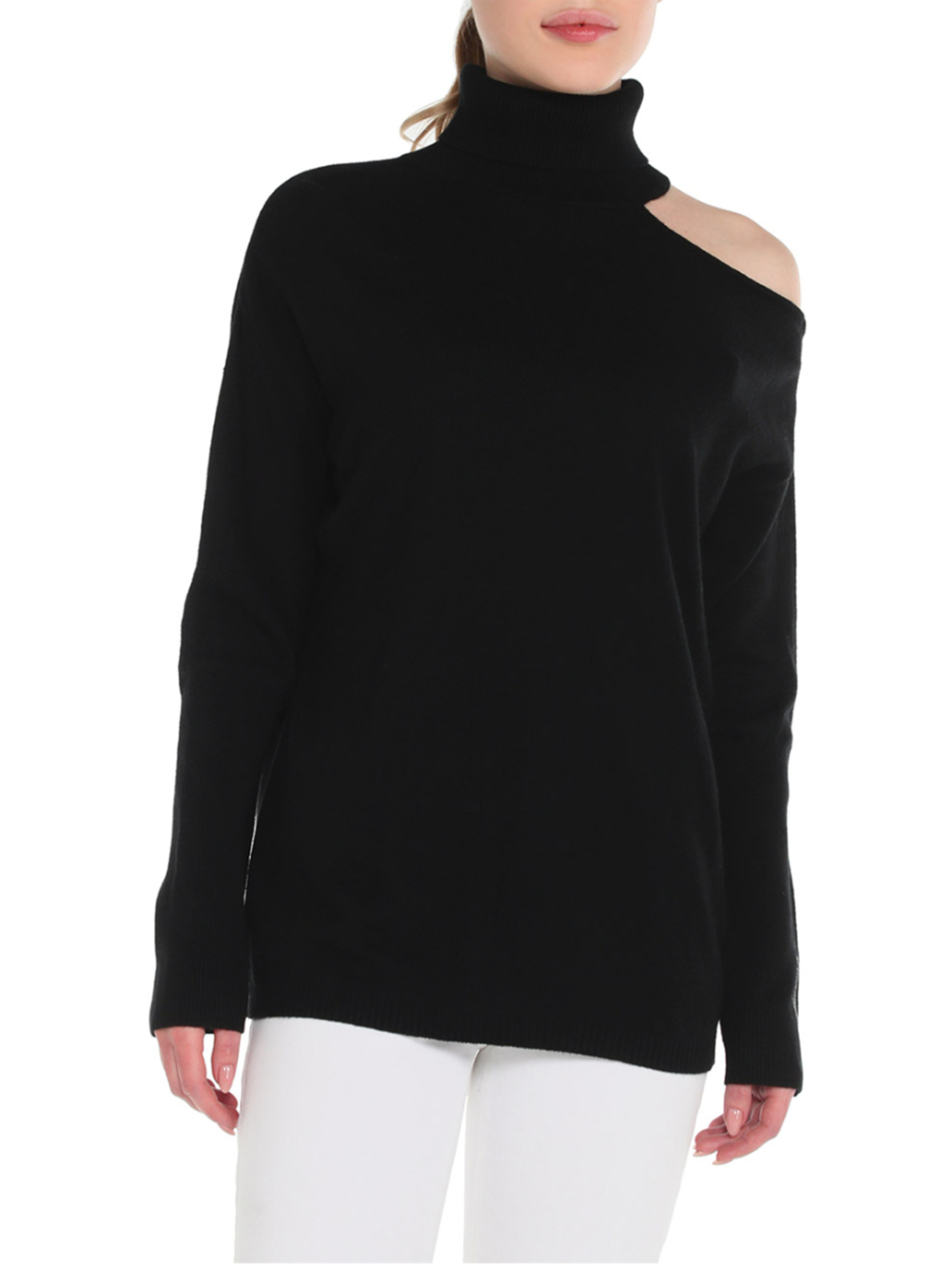 dámský černý svetr od Guess.Materiál:35% akryl30% polyamid20% kašmír15% visózaStřih:Regular Fit