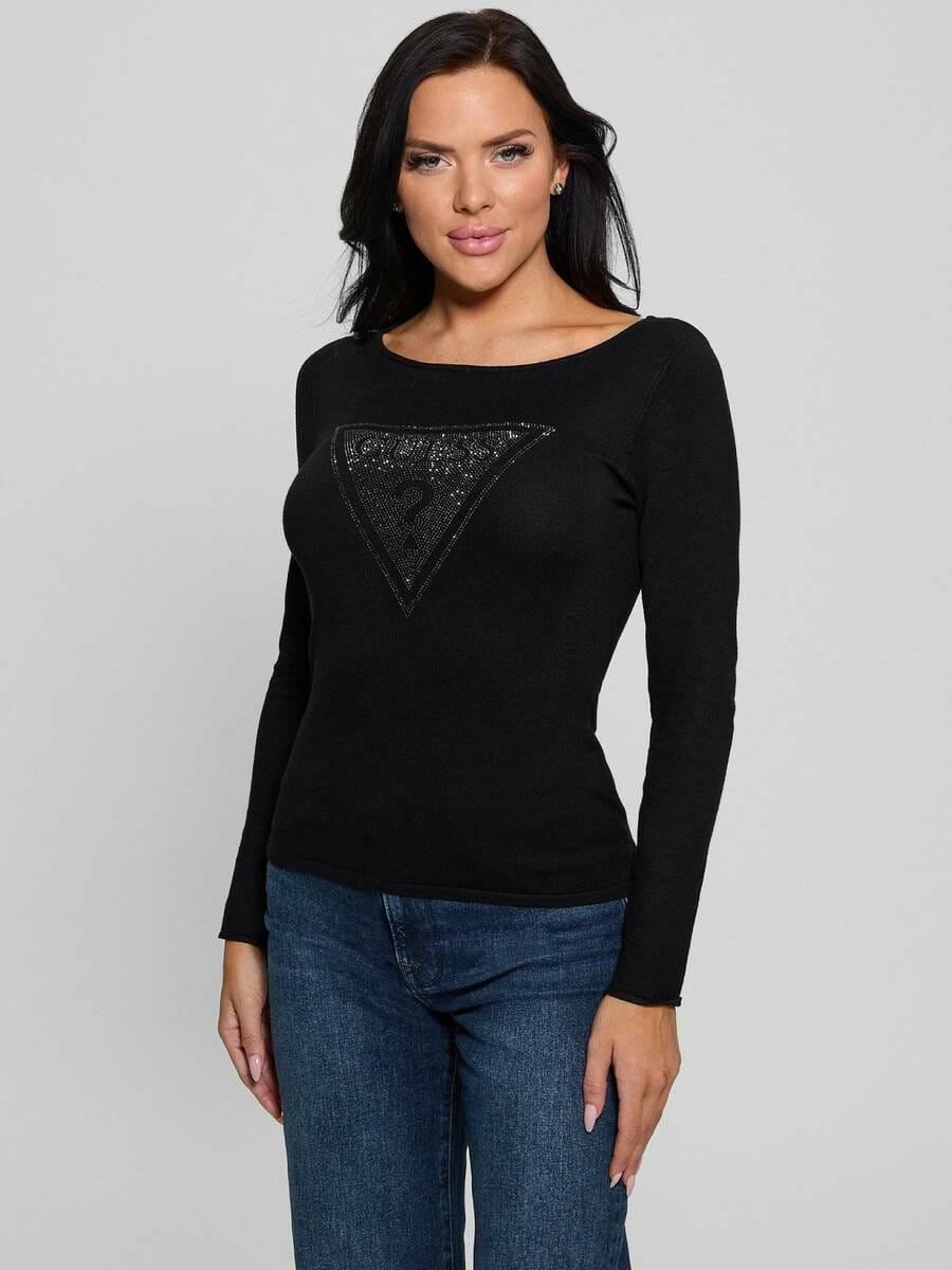 dámský černý svetřík s kamínkovým logem od Guess.Materiál:71% viskóza29% polyamid