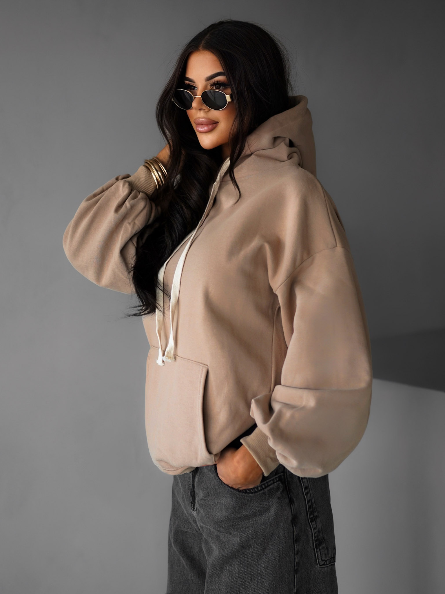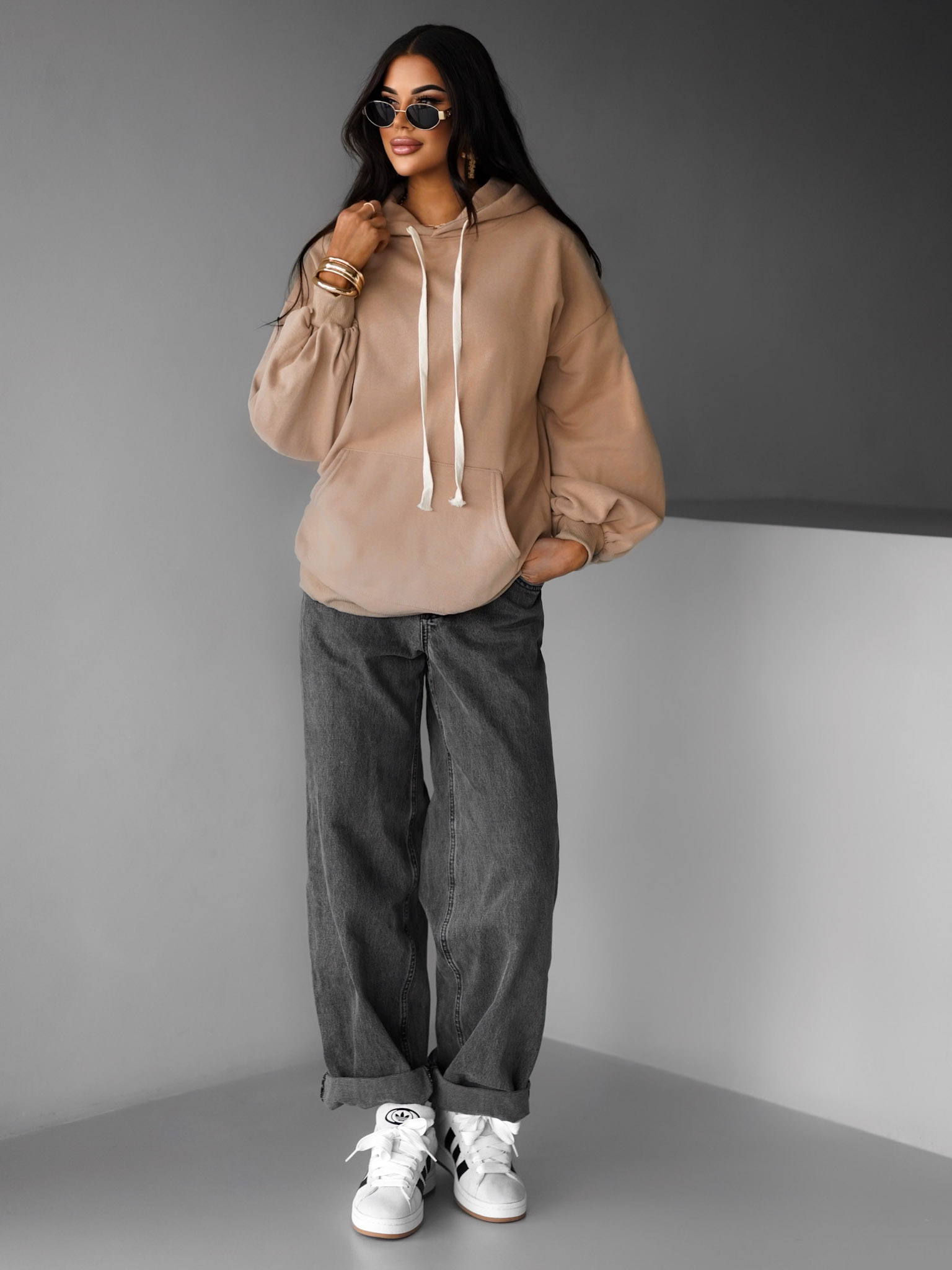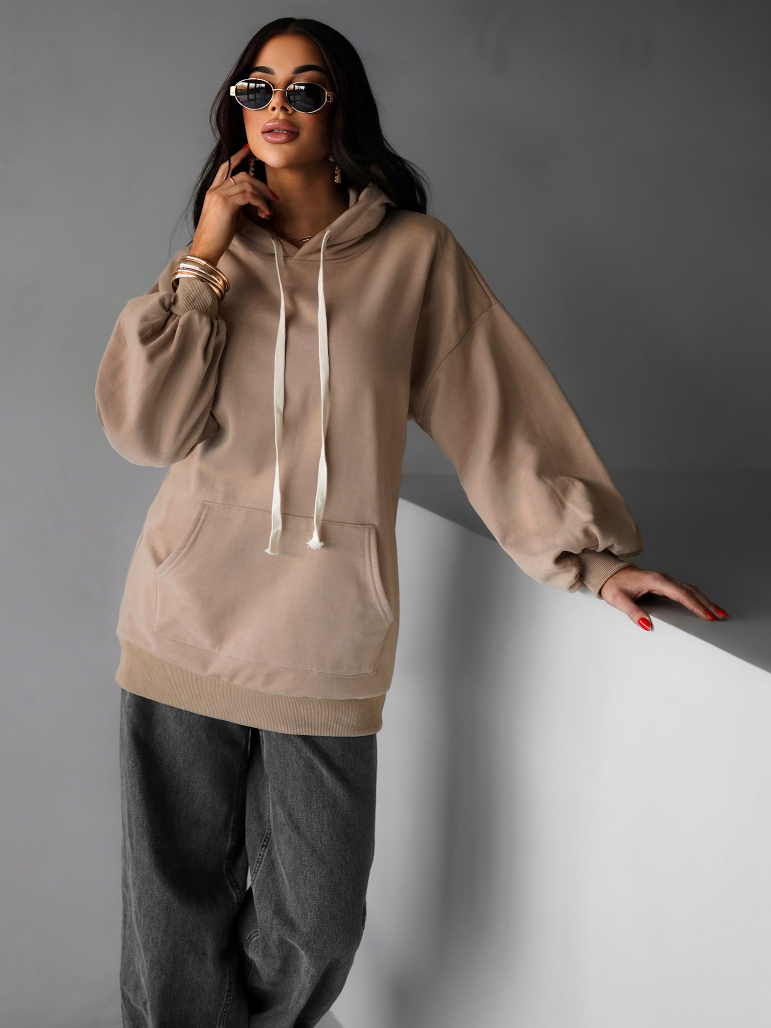 Hnědá basic oversize mikina CRUZY s kapucí Velikost: ONESIZE