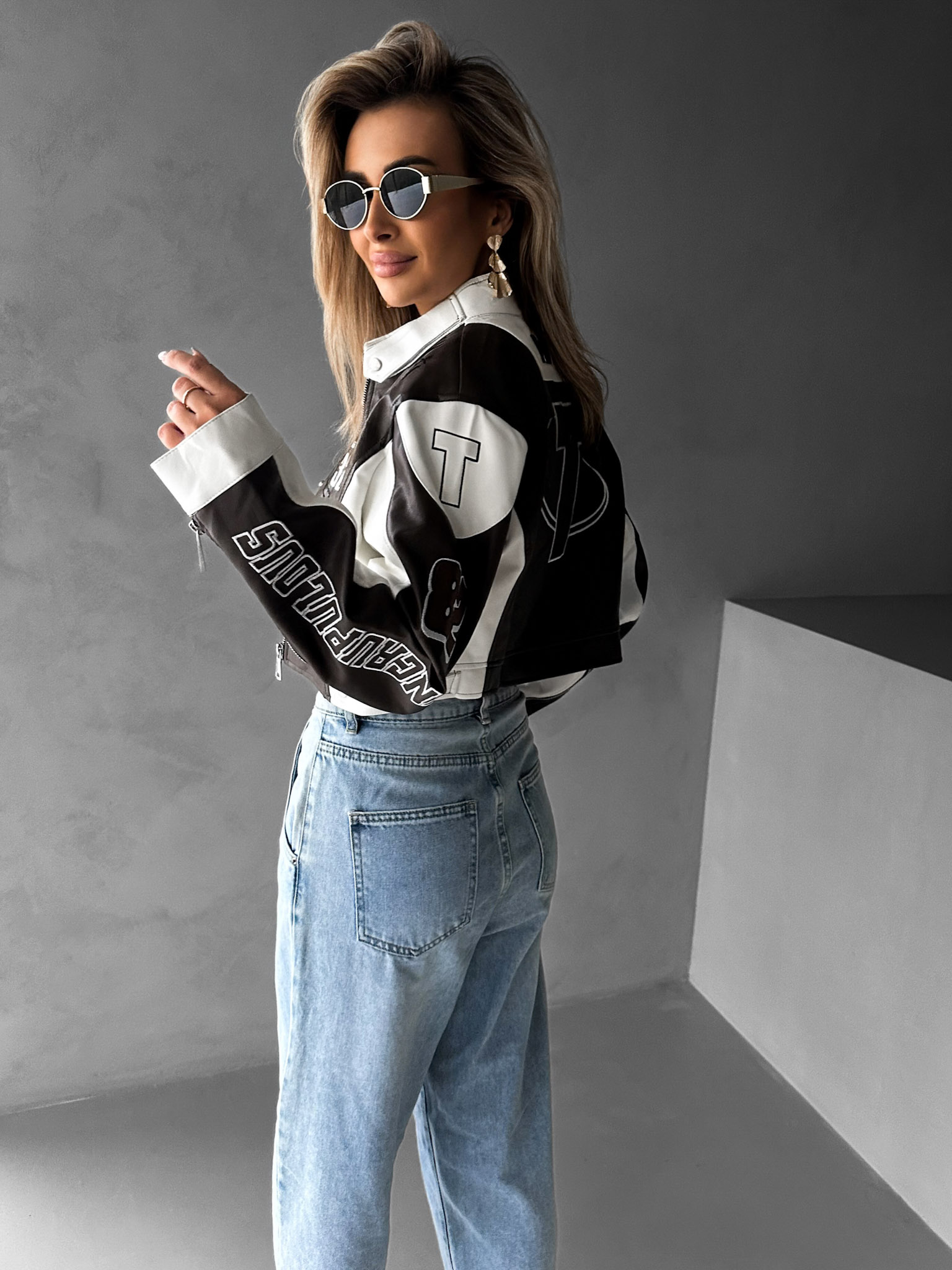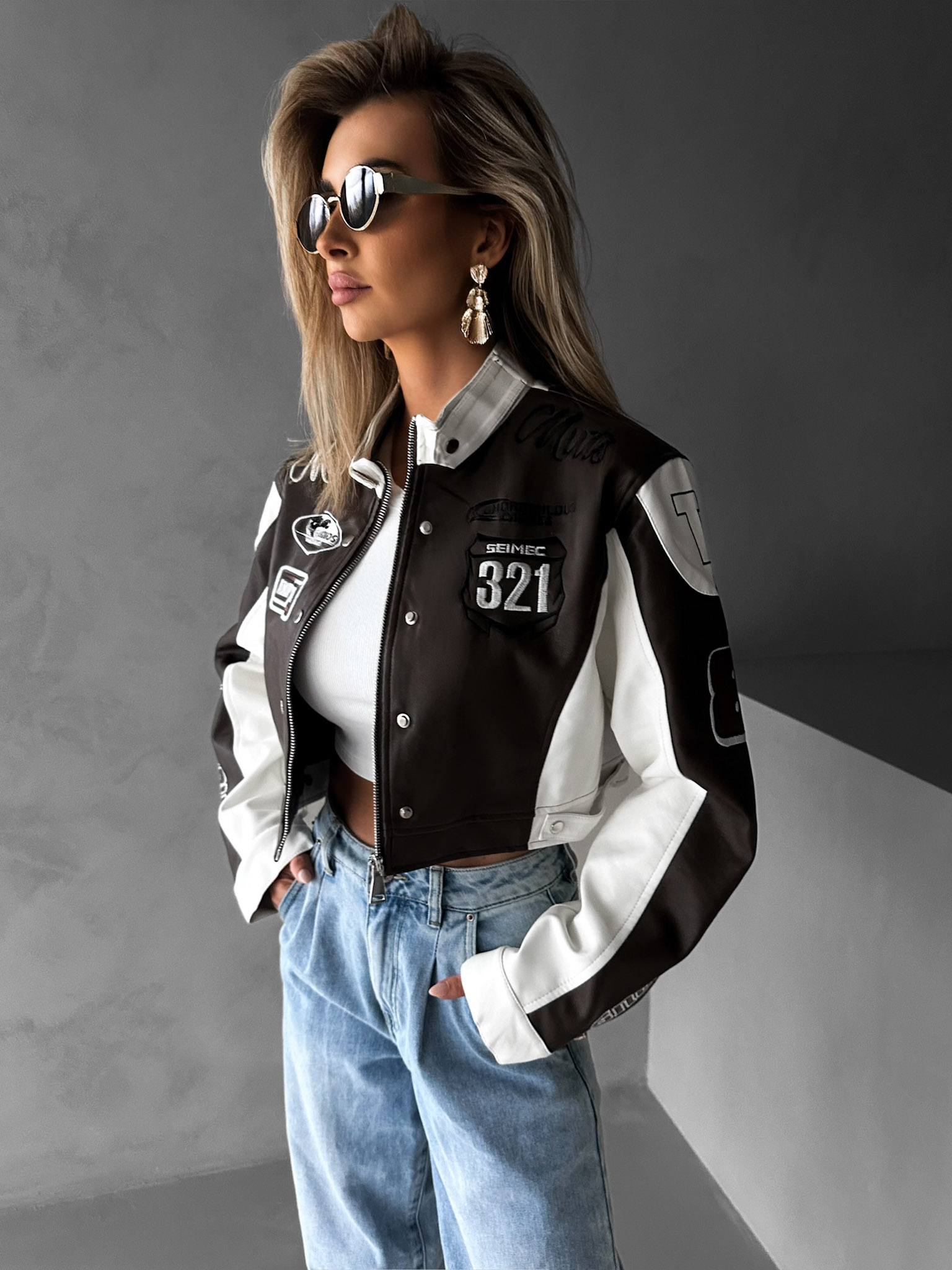 Hnědá krátká koženková biker moto bunda CANDIDA Velikost: ONESIZE