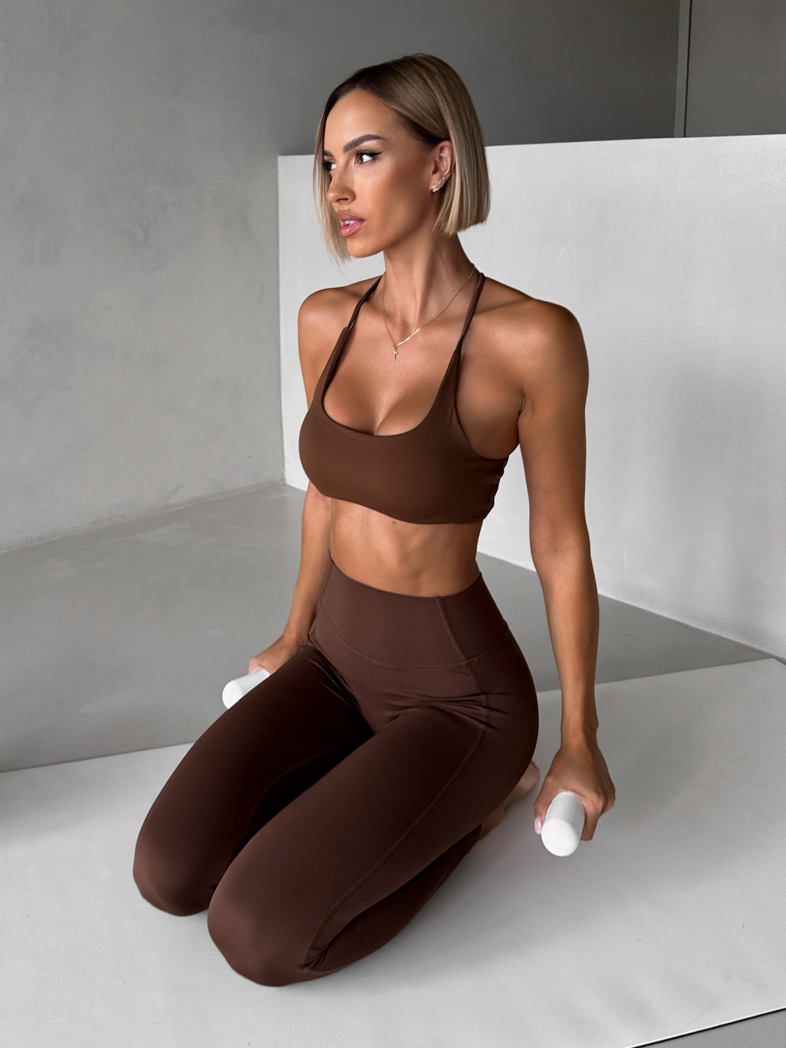 Hnědá sportovní podprsenka SALONI na tenká ramínka Velikost: L