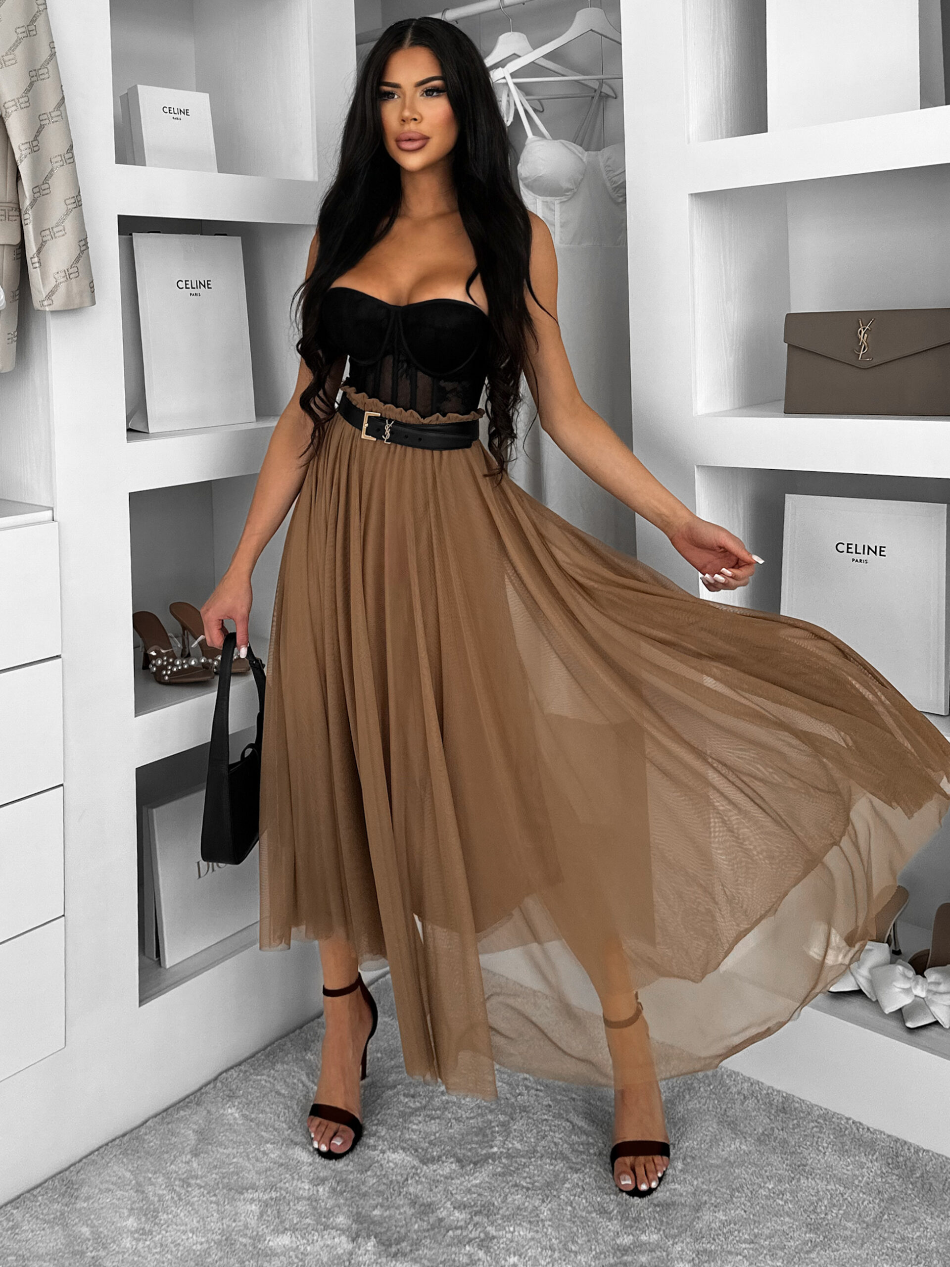 Hnědá tylová midi sukně NEXORA Velikost: ONESIZE