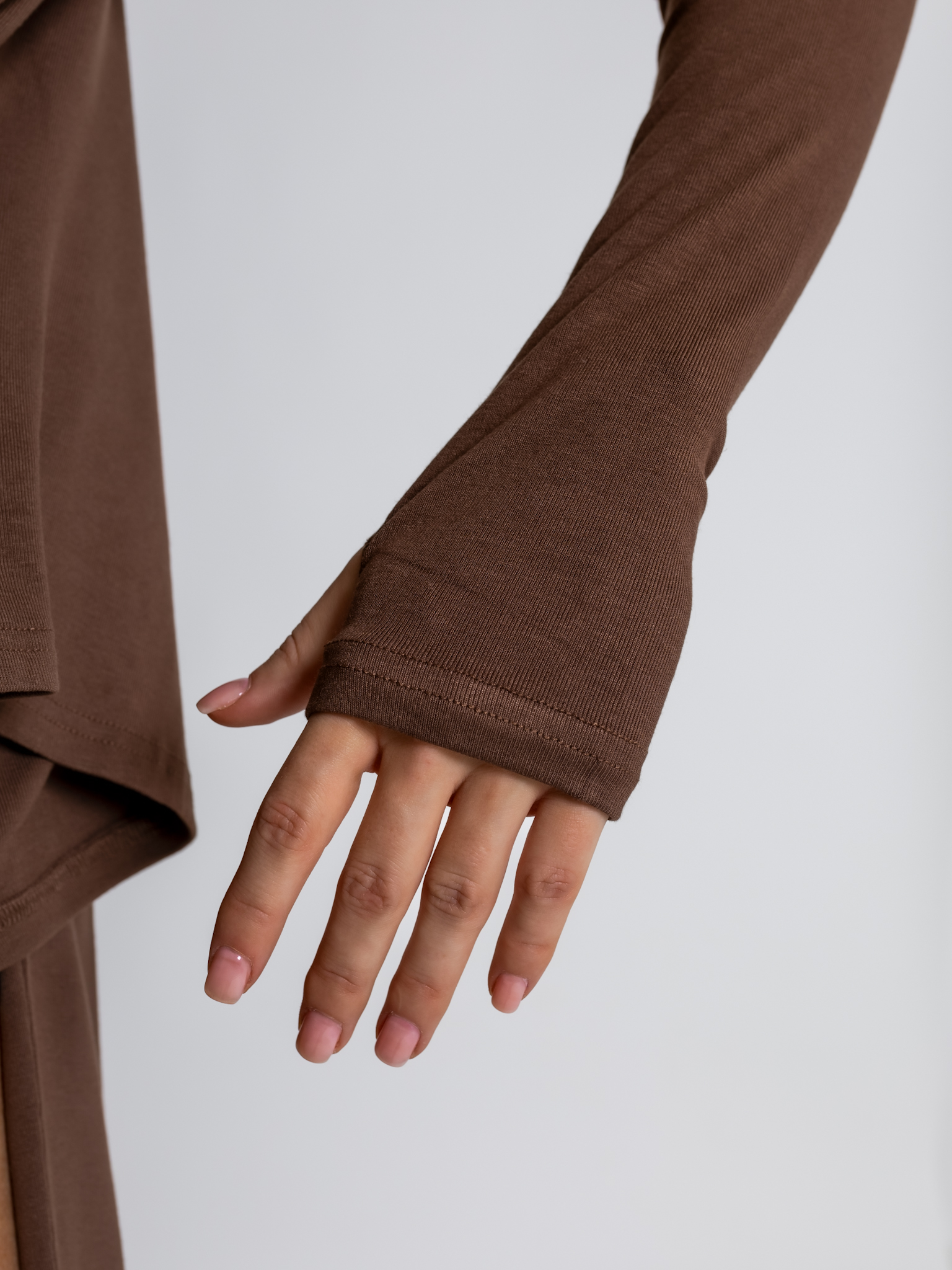 Hnědé basic triko HARITA na zip Velikost: M/L