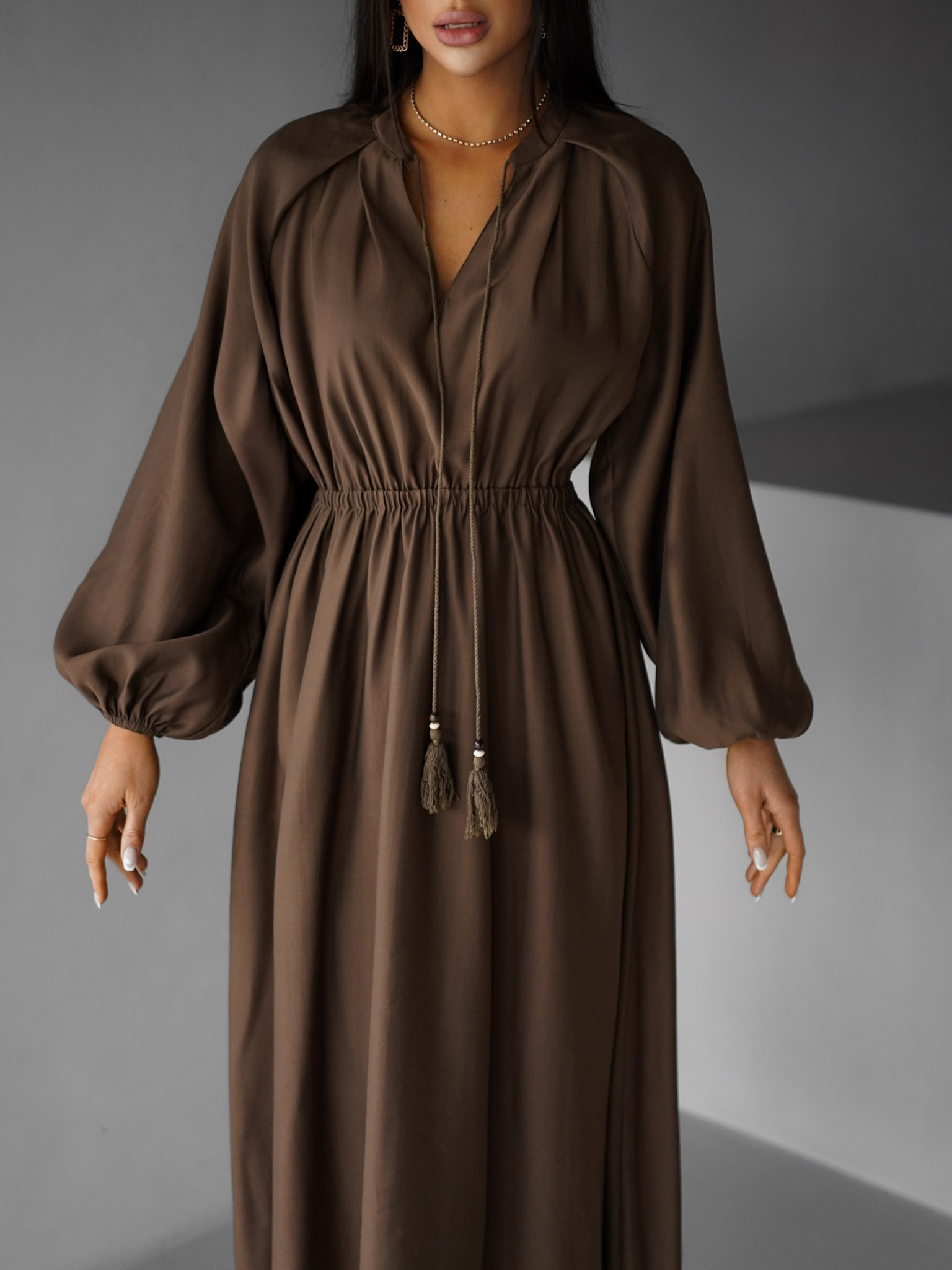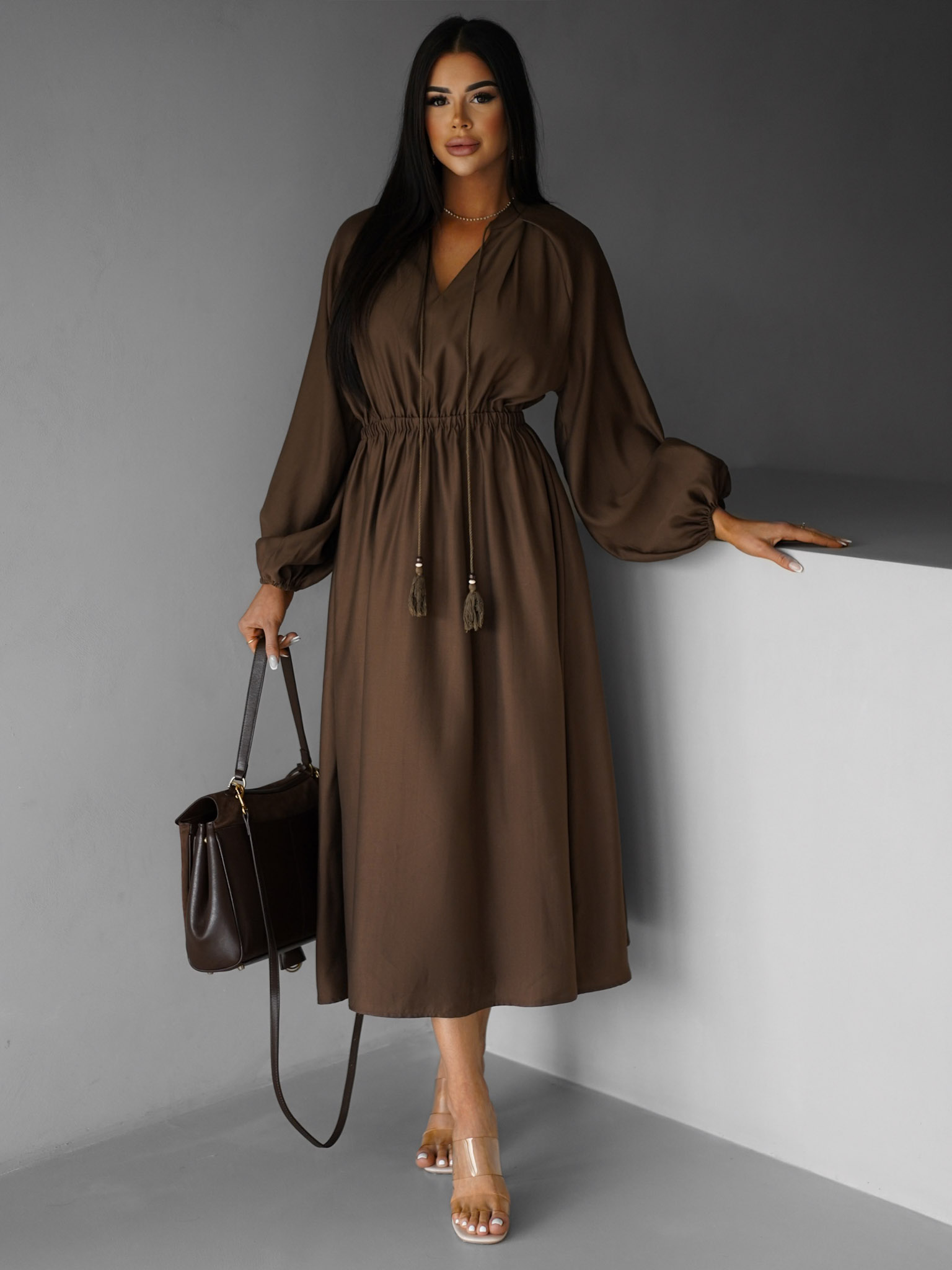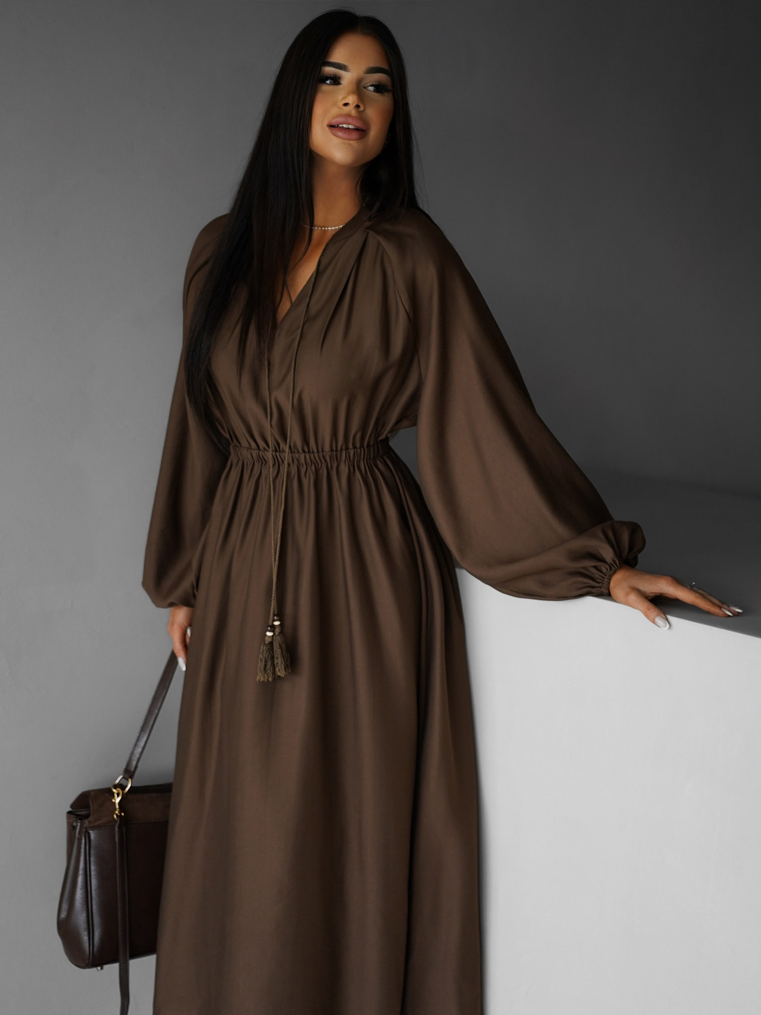 Hnědé dlouhé kaftanové šaty KULONA Velikost: ONESIZE
