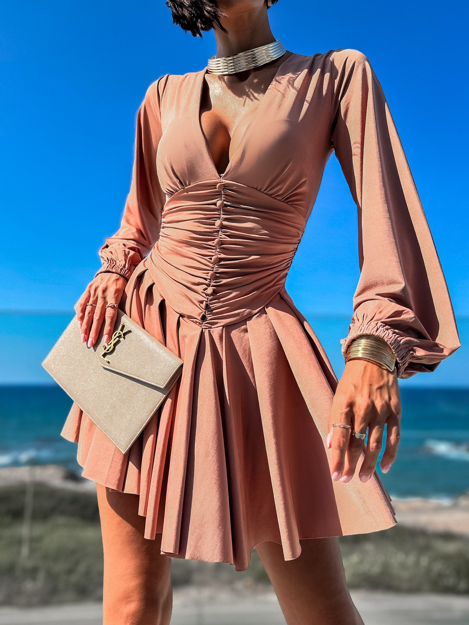 Hnědé elegantní šaty AURORAS s dlouhým rukávem Velikost: S