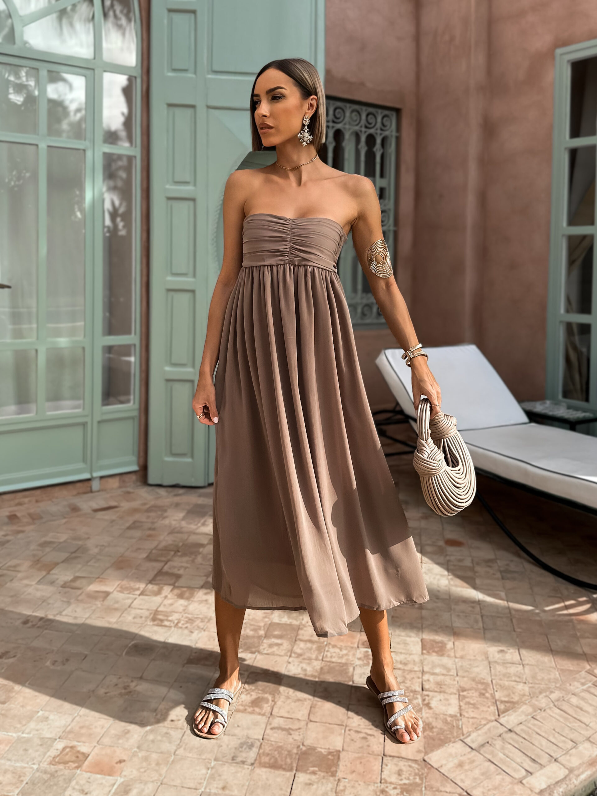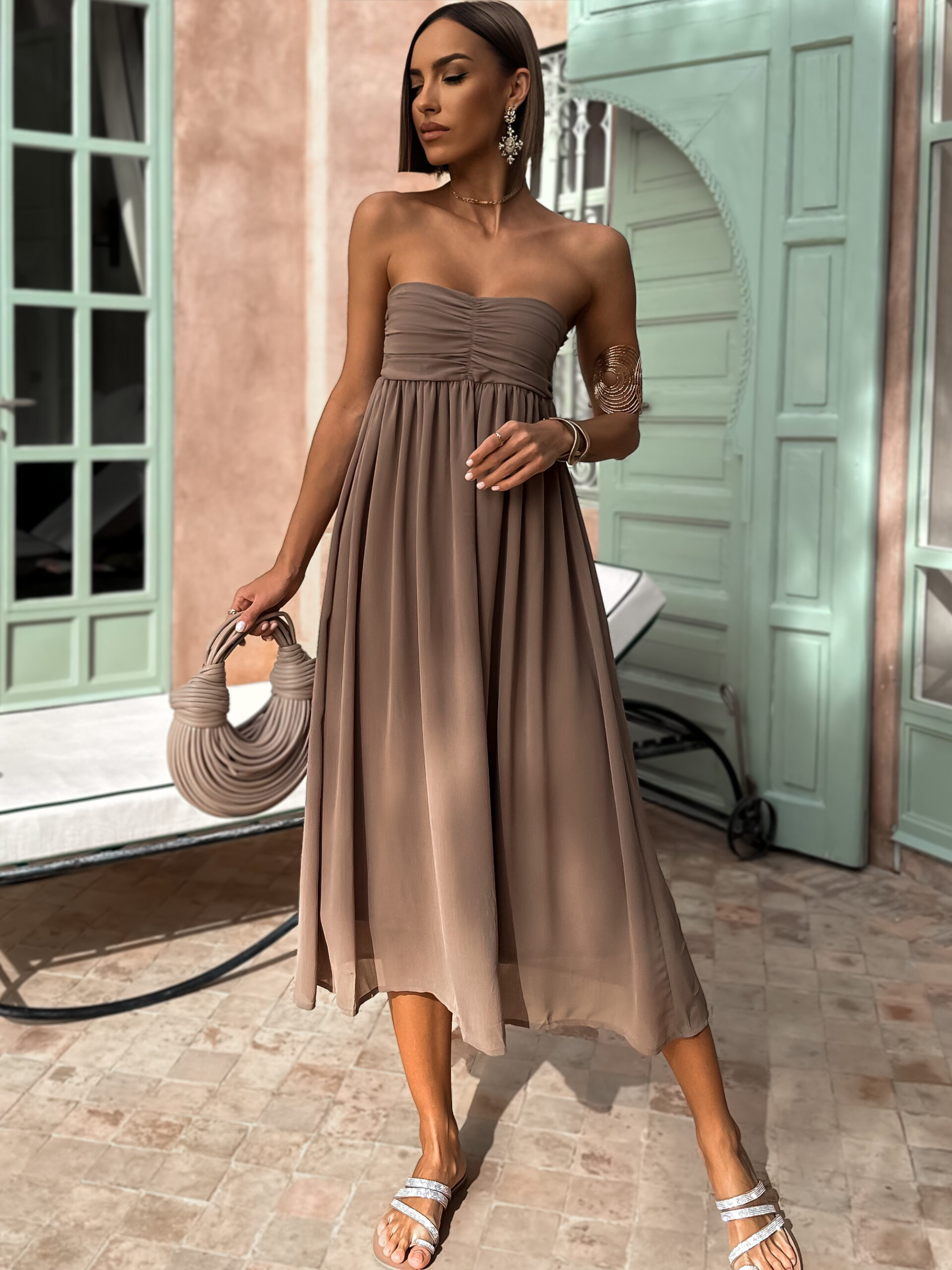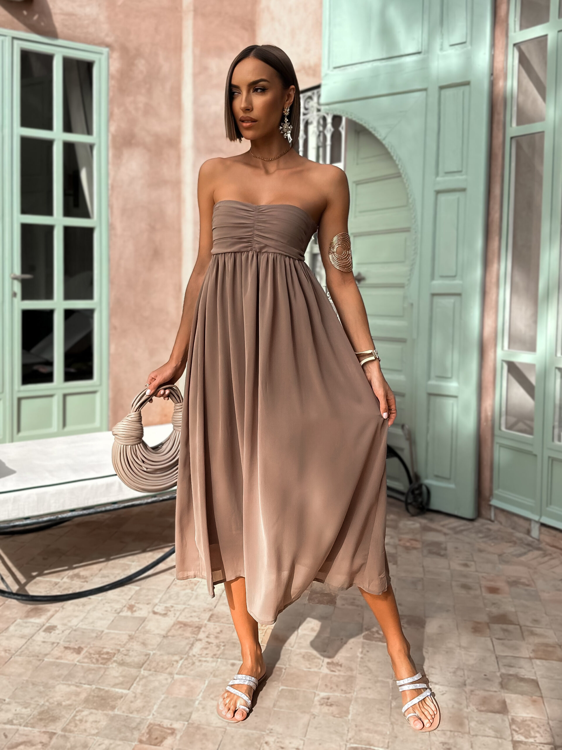 Hnědé elegantní šaty AUTEREL Velikost: ONESIZE