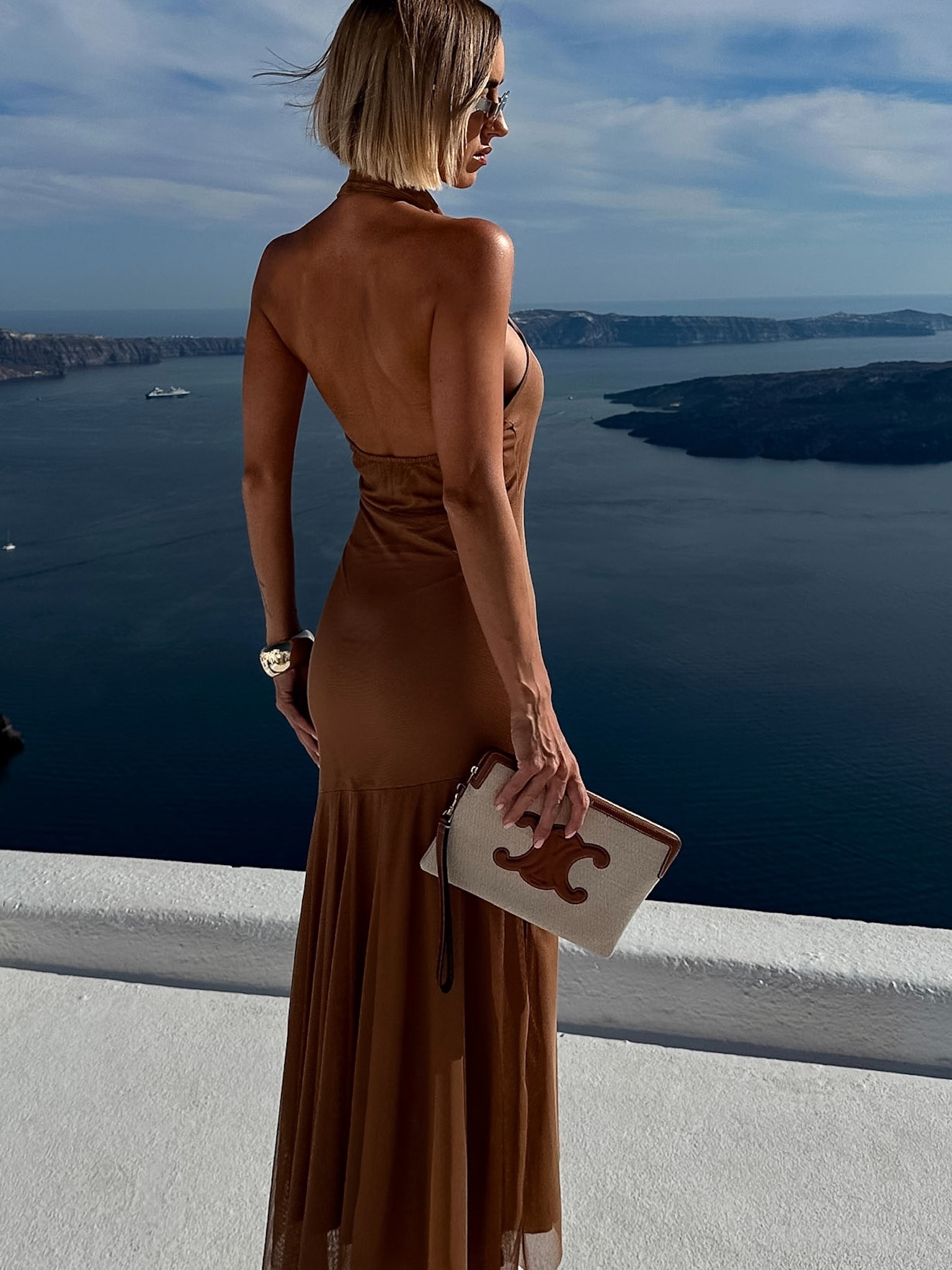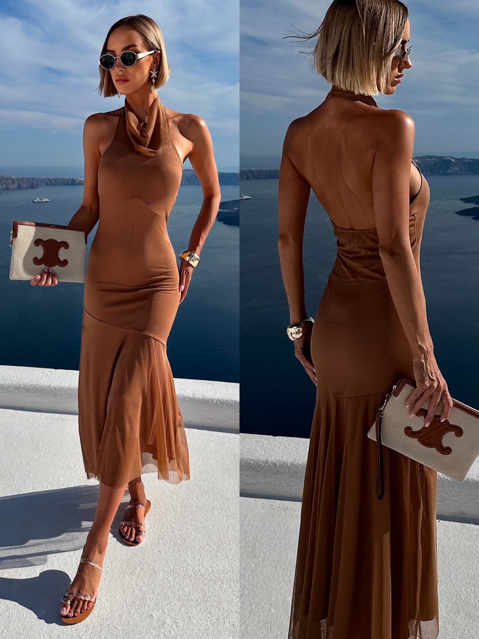 Hnědé letní dlouhé šaty FLINTYE Velikost: ONESIZE
