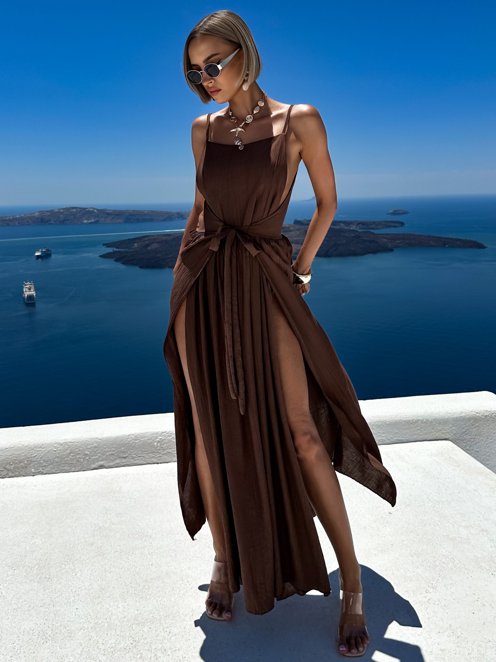 Hnědé letní šaty CHEETACH se zavazováním Velikost: ONESIZE