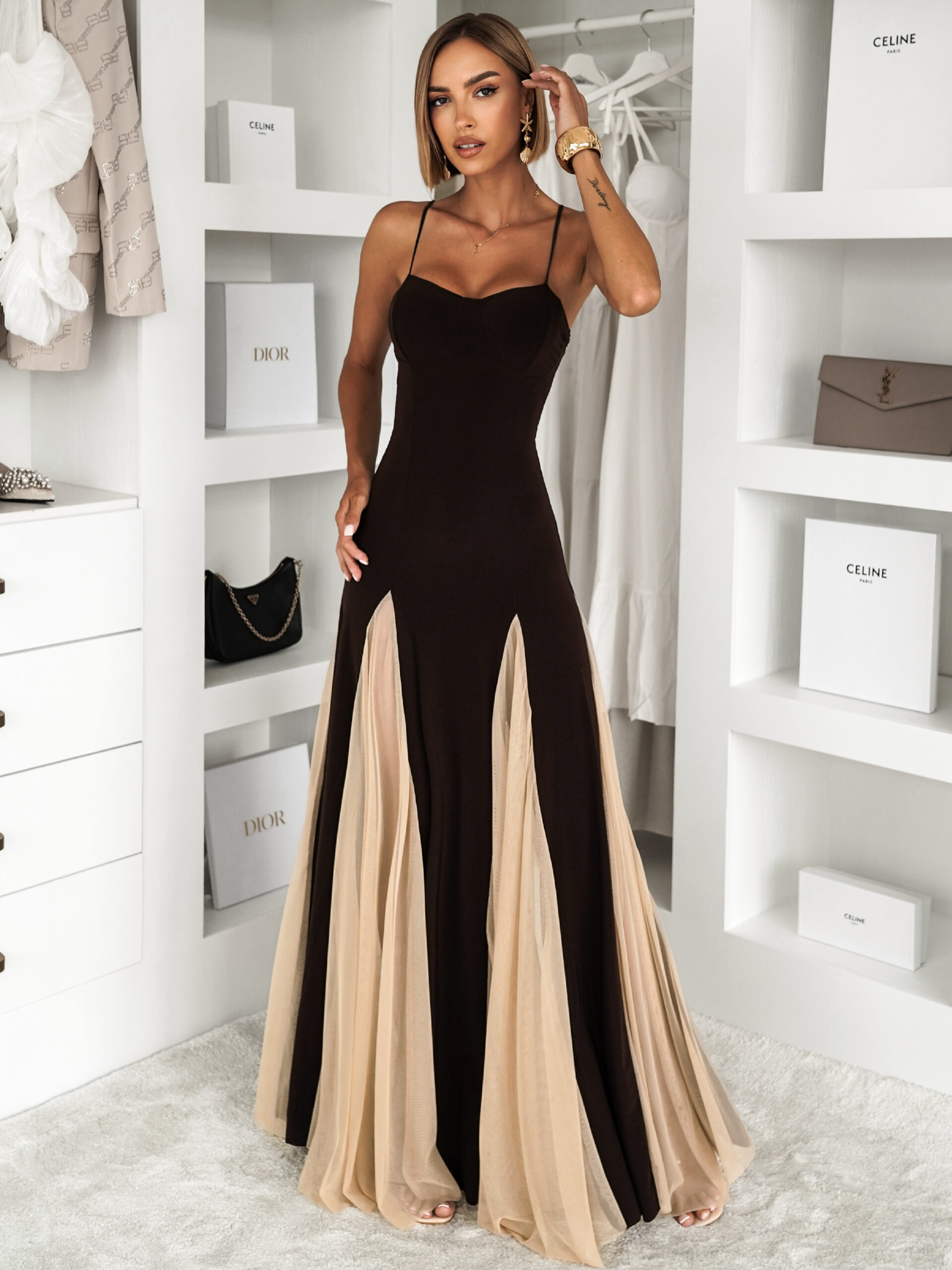 Hnědé maxi dlouhé elegantní šaty DRELVIK Velikost: ONESIZE