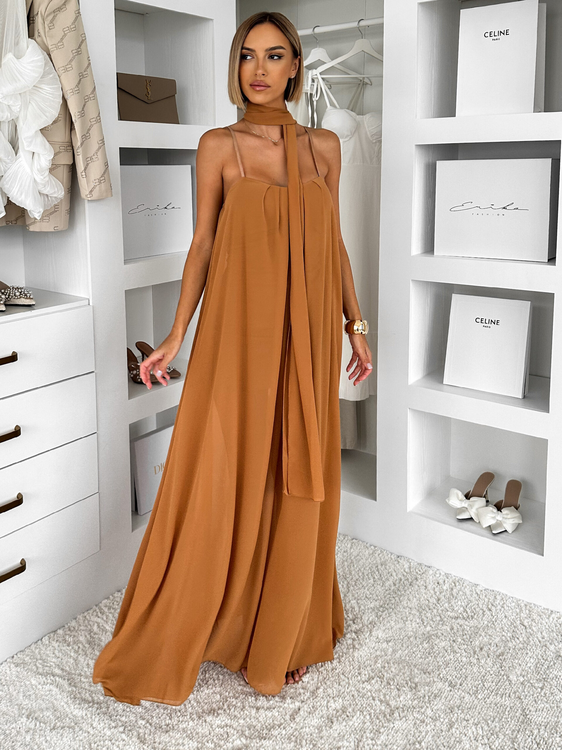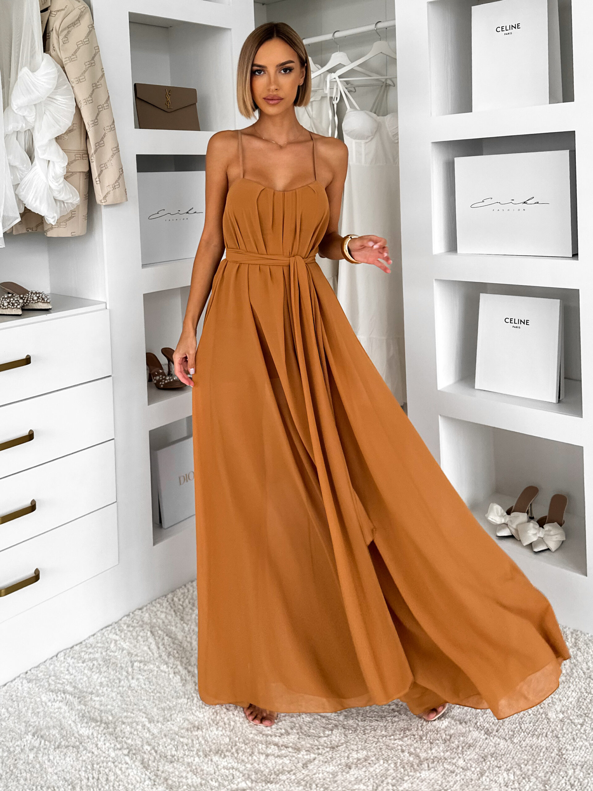 Hnědé společenské dlouhé šaty VESTELA s vlečkou Velikost: ONESIZE