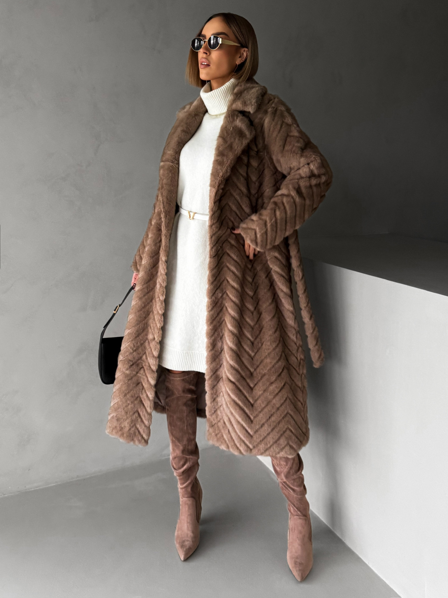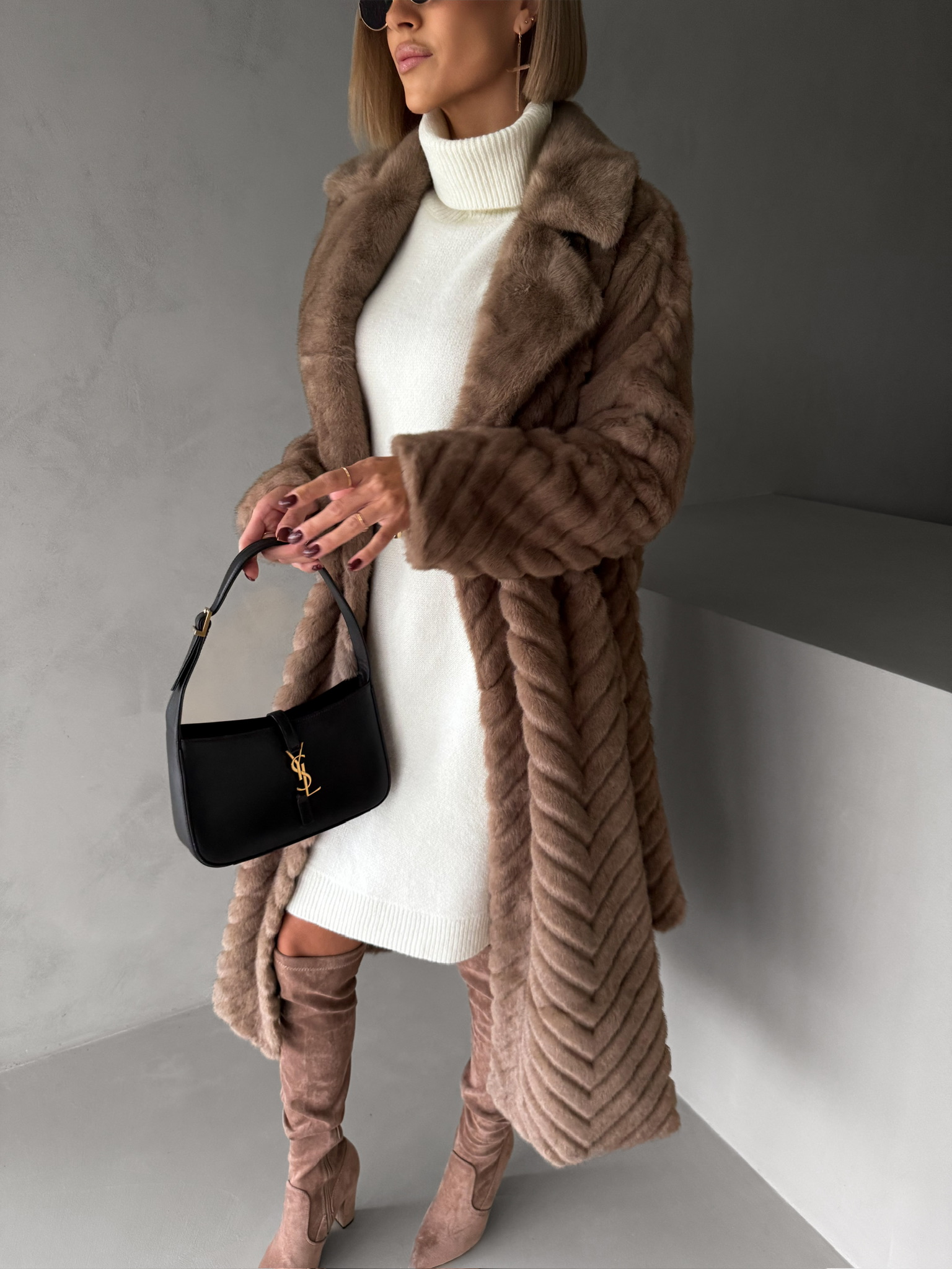 Hnědý dlouhý faux fur kožešinový kabát TALAPATO Velikost: S/M