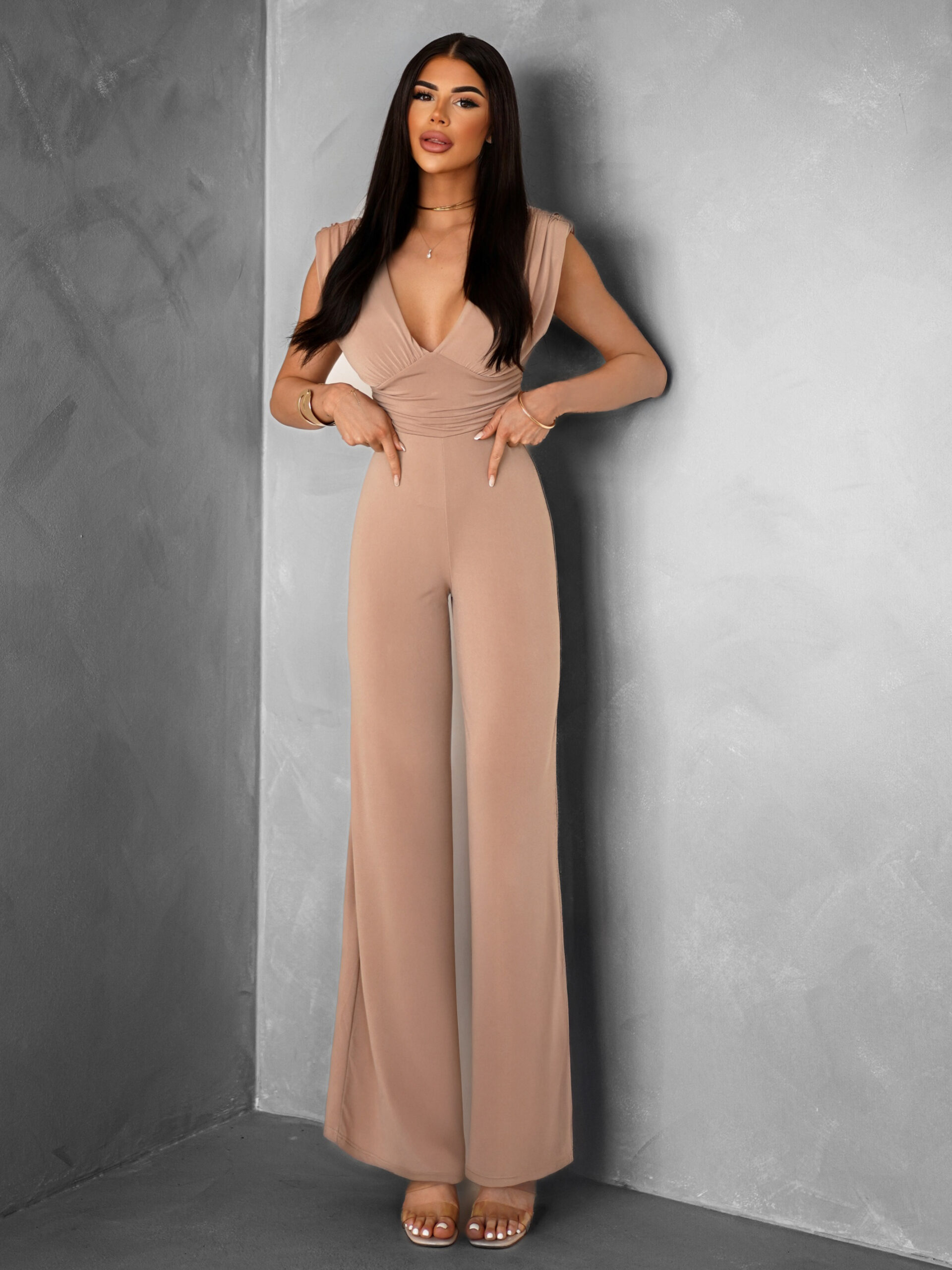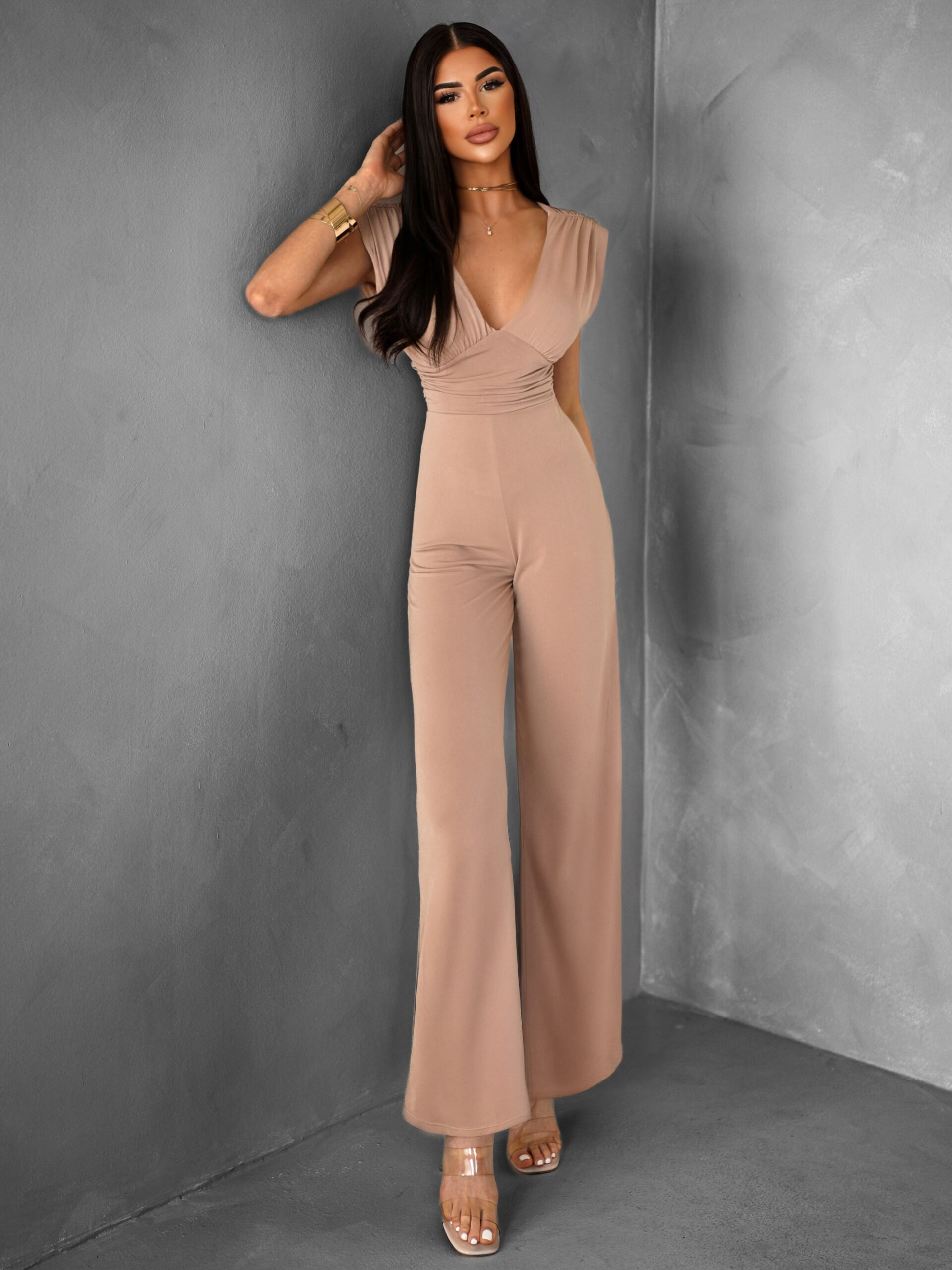 Hnědý elegantní dlouhý společenský overal ELSASA Velikost: ONESIZE