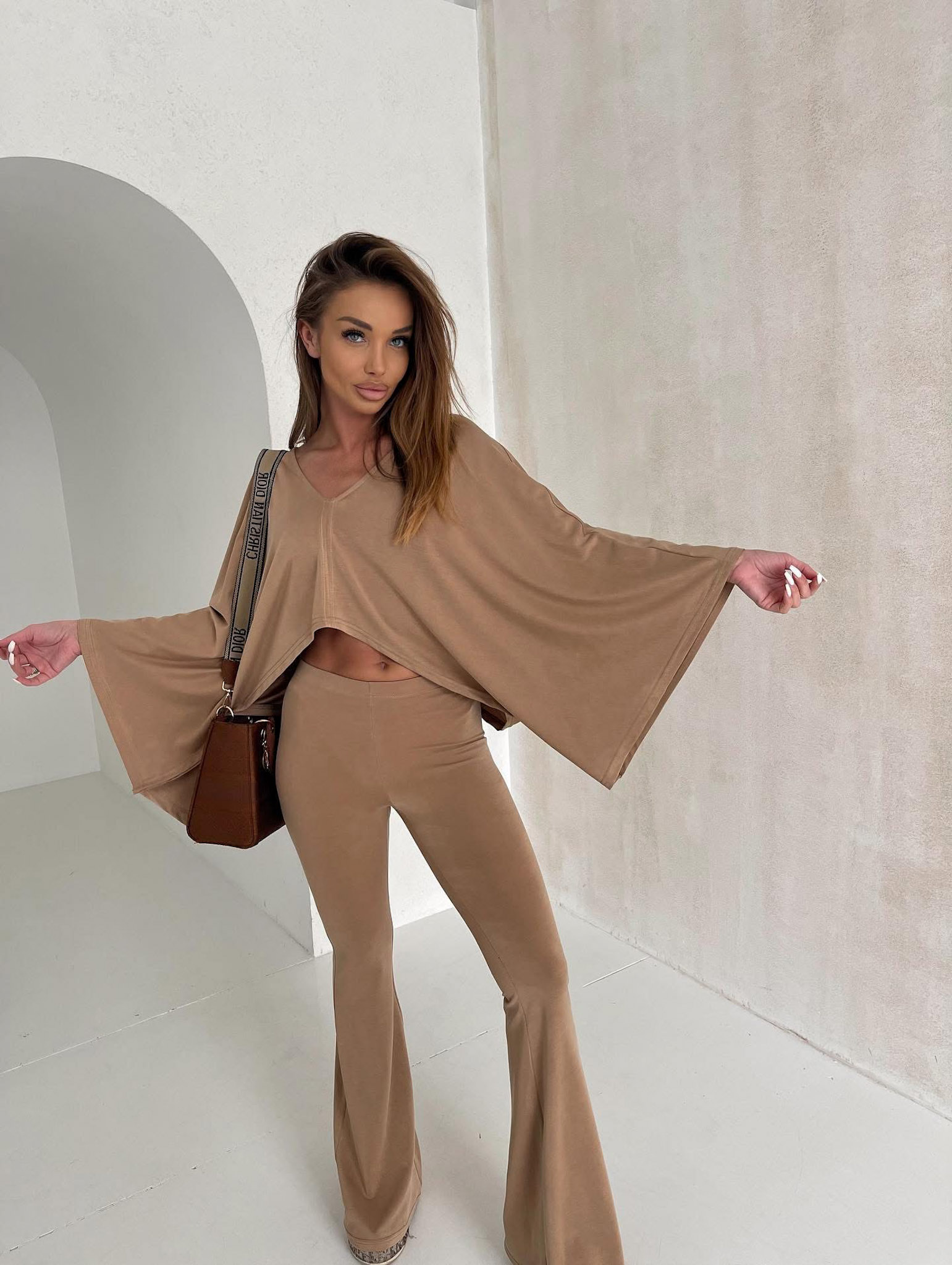 Hnědý elegantní kalhotový komplet URWALE Velikost: ONESIZE