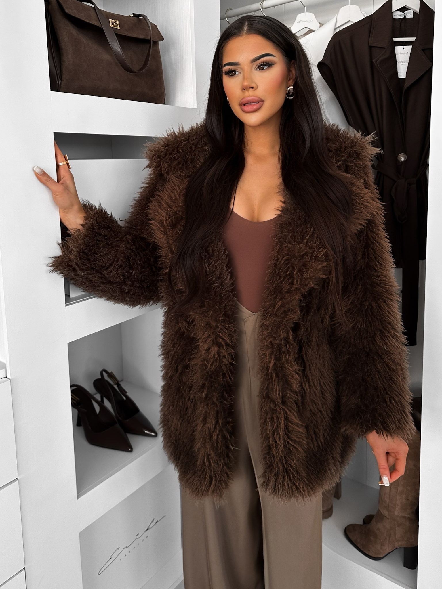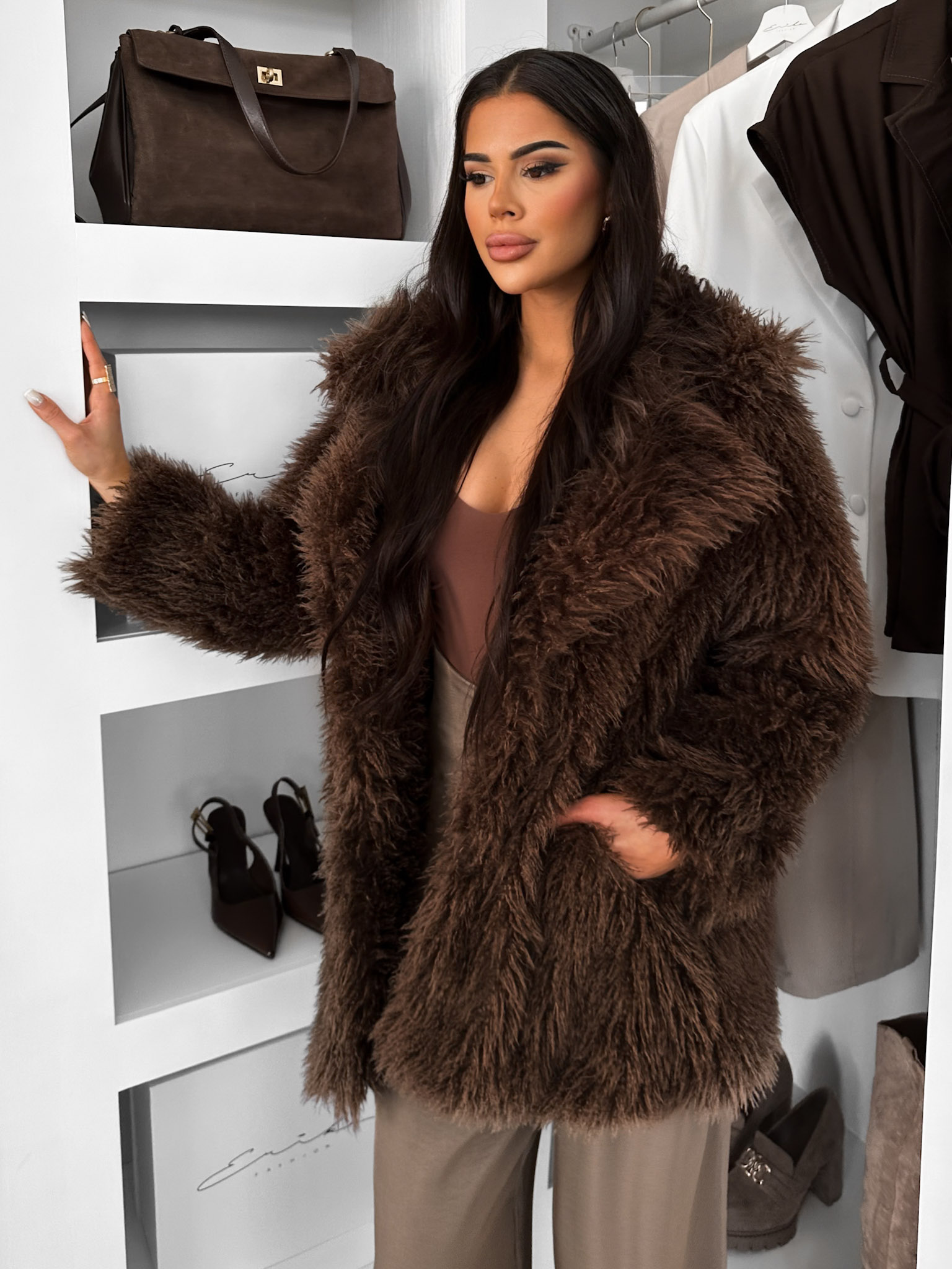Hnědý faux fur kožešinový kabát CAMTU Velikost: S/M