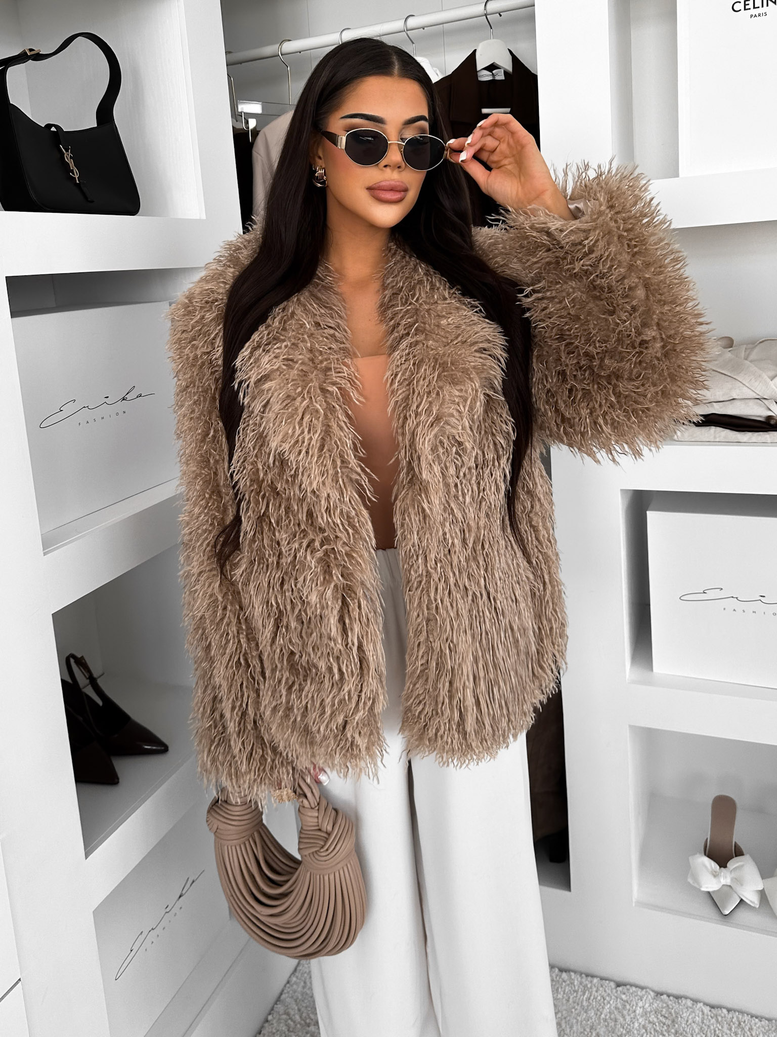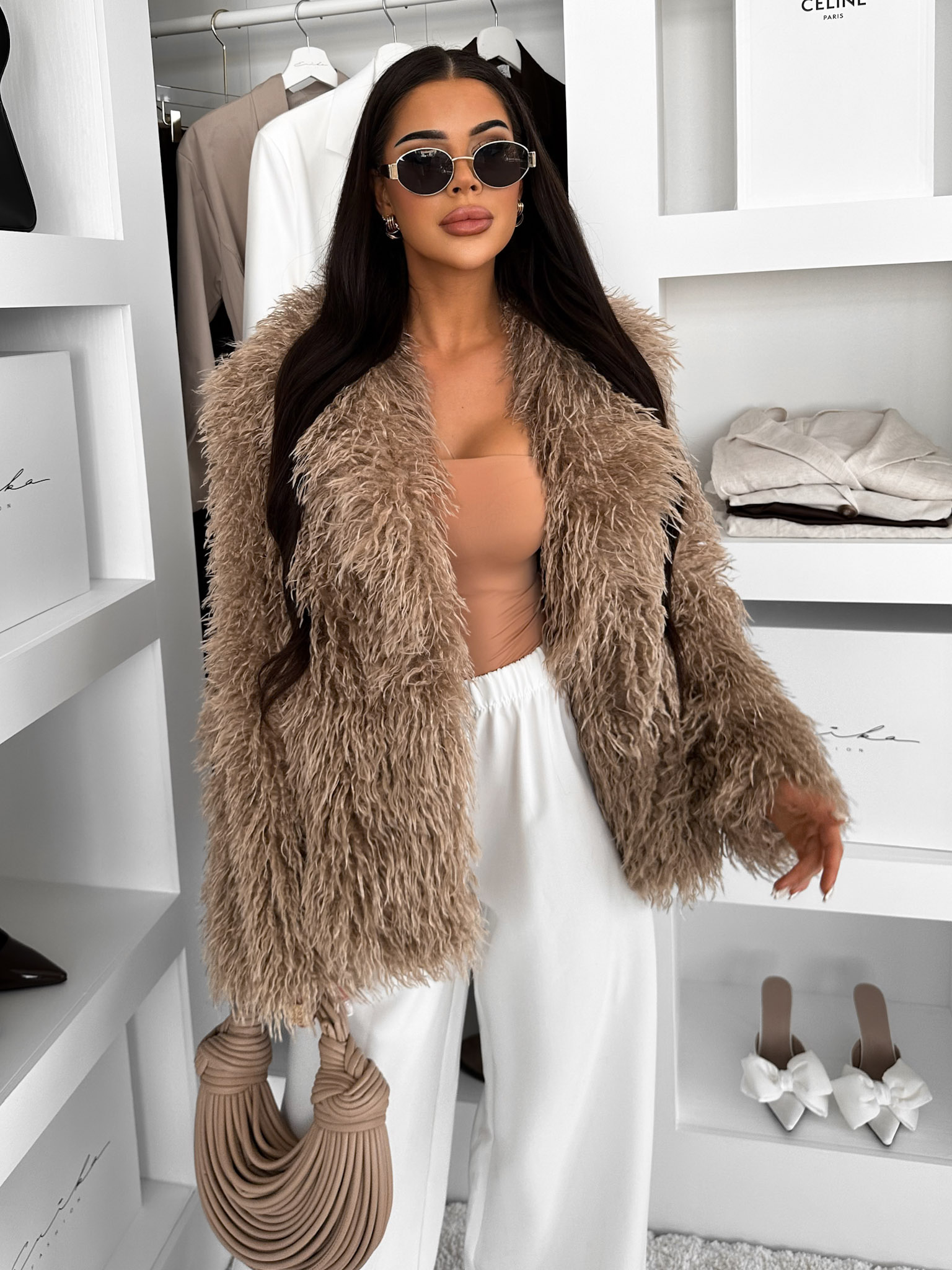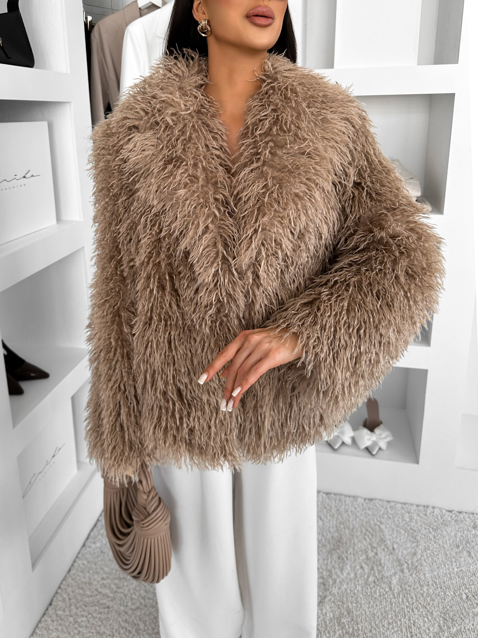 Hnědý faux fur kožešinový krátký kabátek HIENO Velikost: ONESIZE