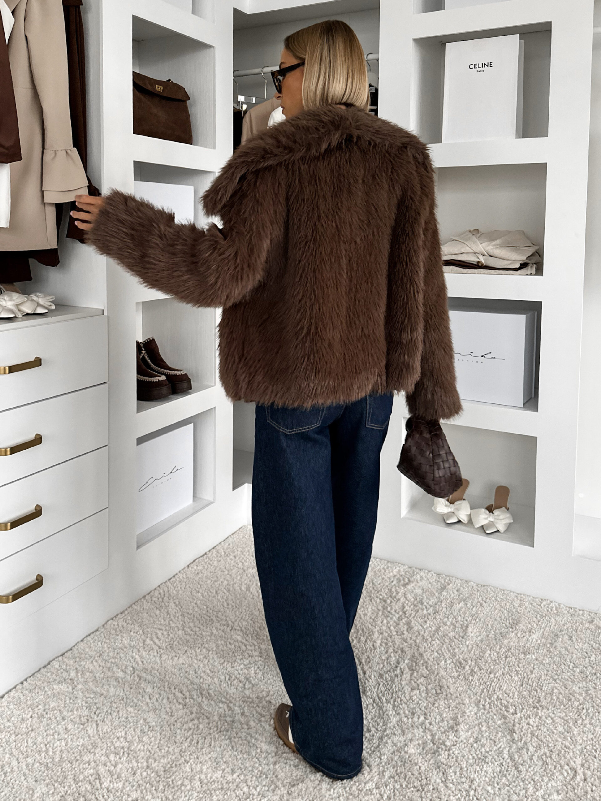 Hnědý faux fur krátký kožešinový kabátek DUYAH Velikost: ONESIZE