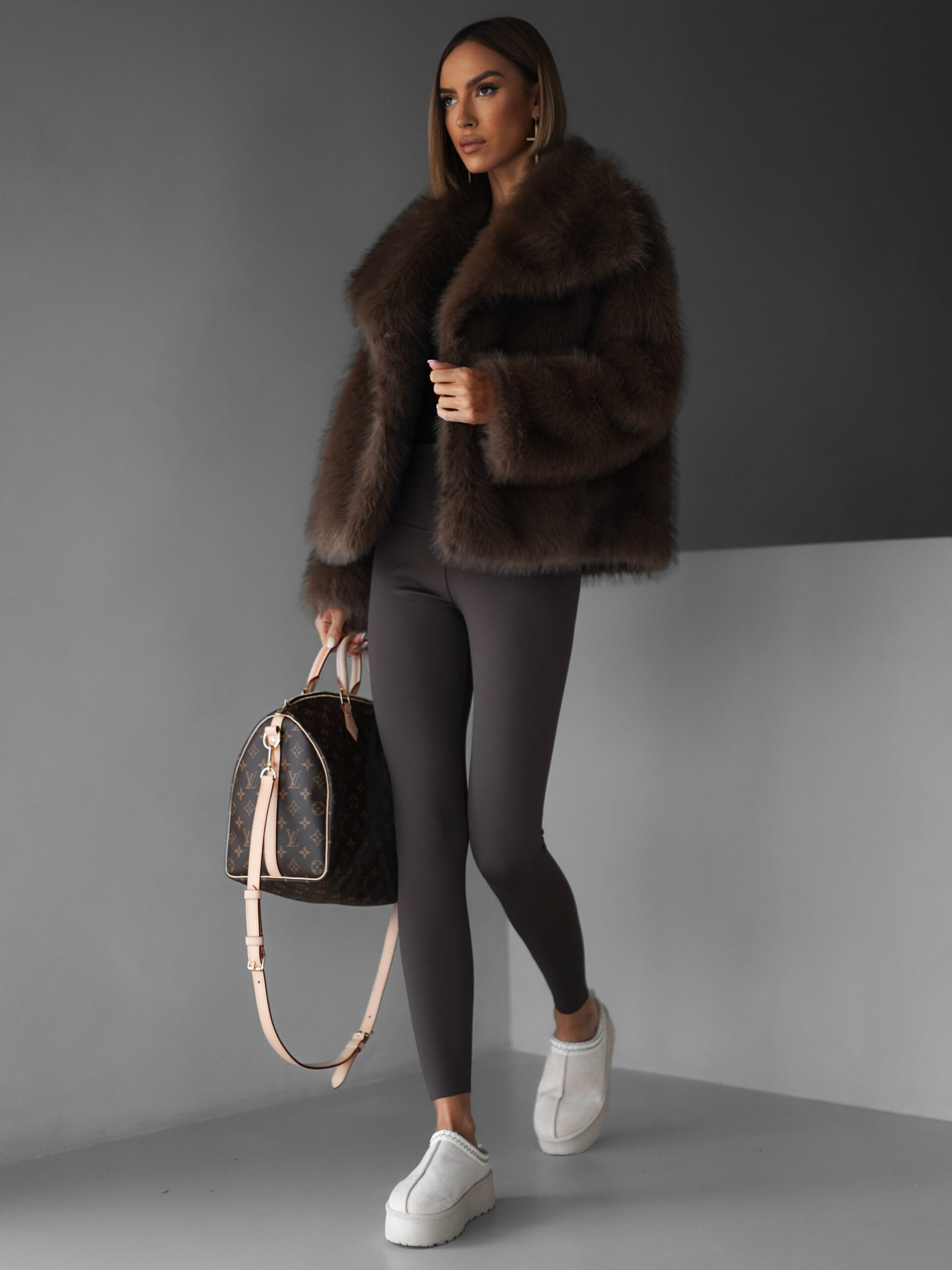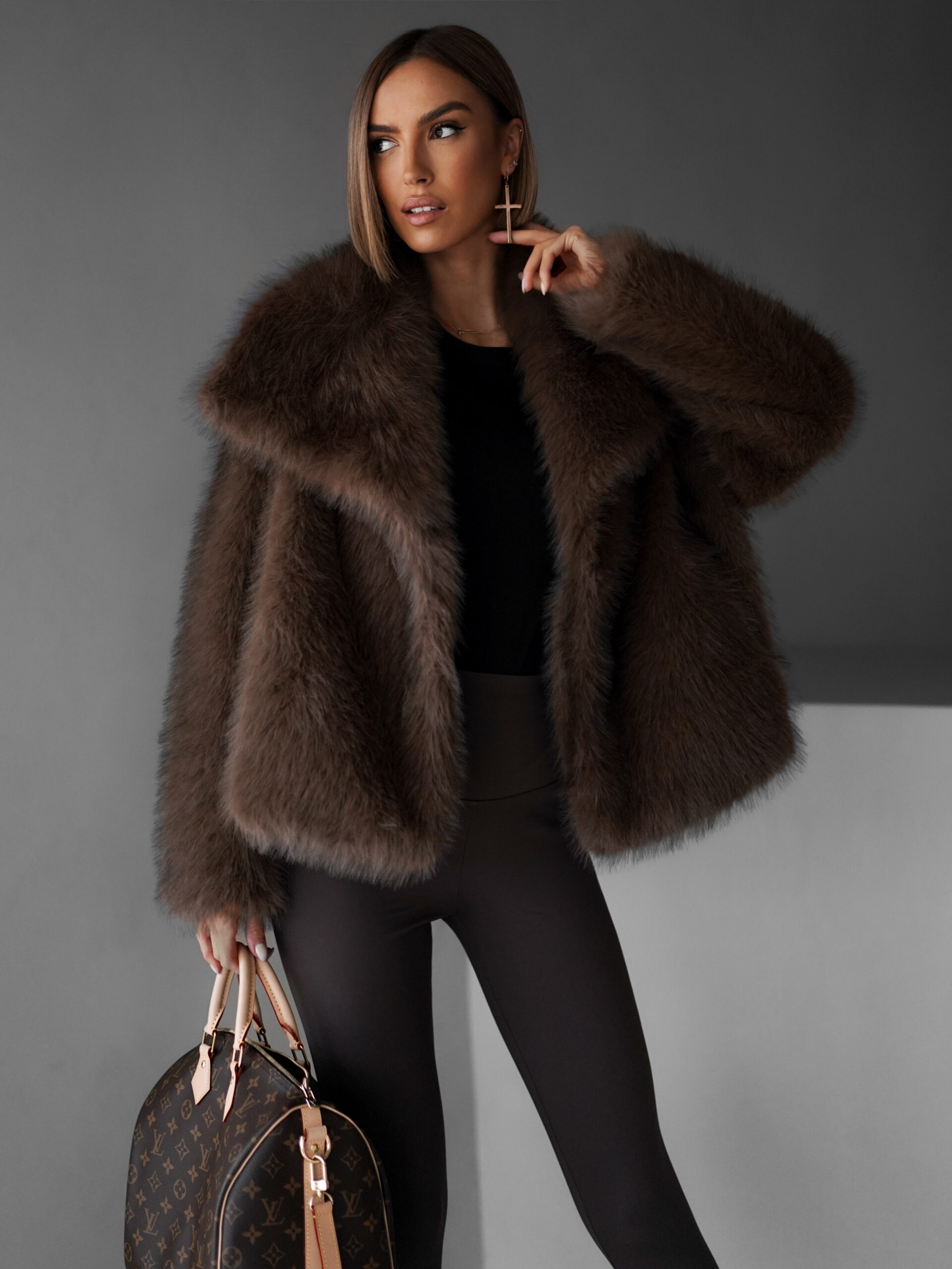 Hnědý fauxfur kožešinový kabátek KIRIAK Velikost: M/L